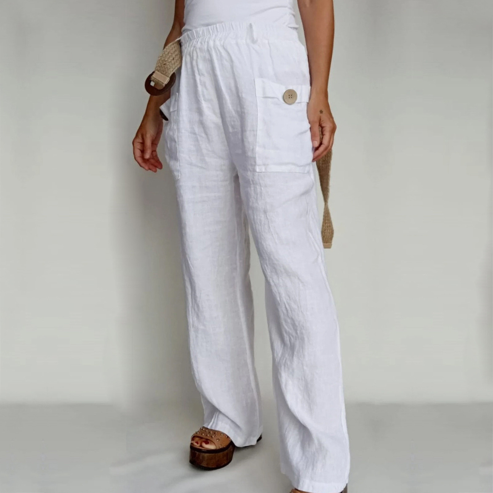 Save $10.50Loose Cotton Linen Casual Button Pants$28.34 USD $38.84 USD -