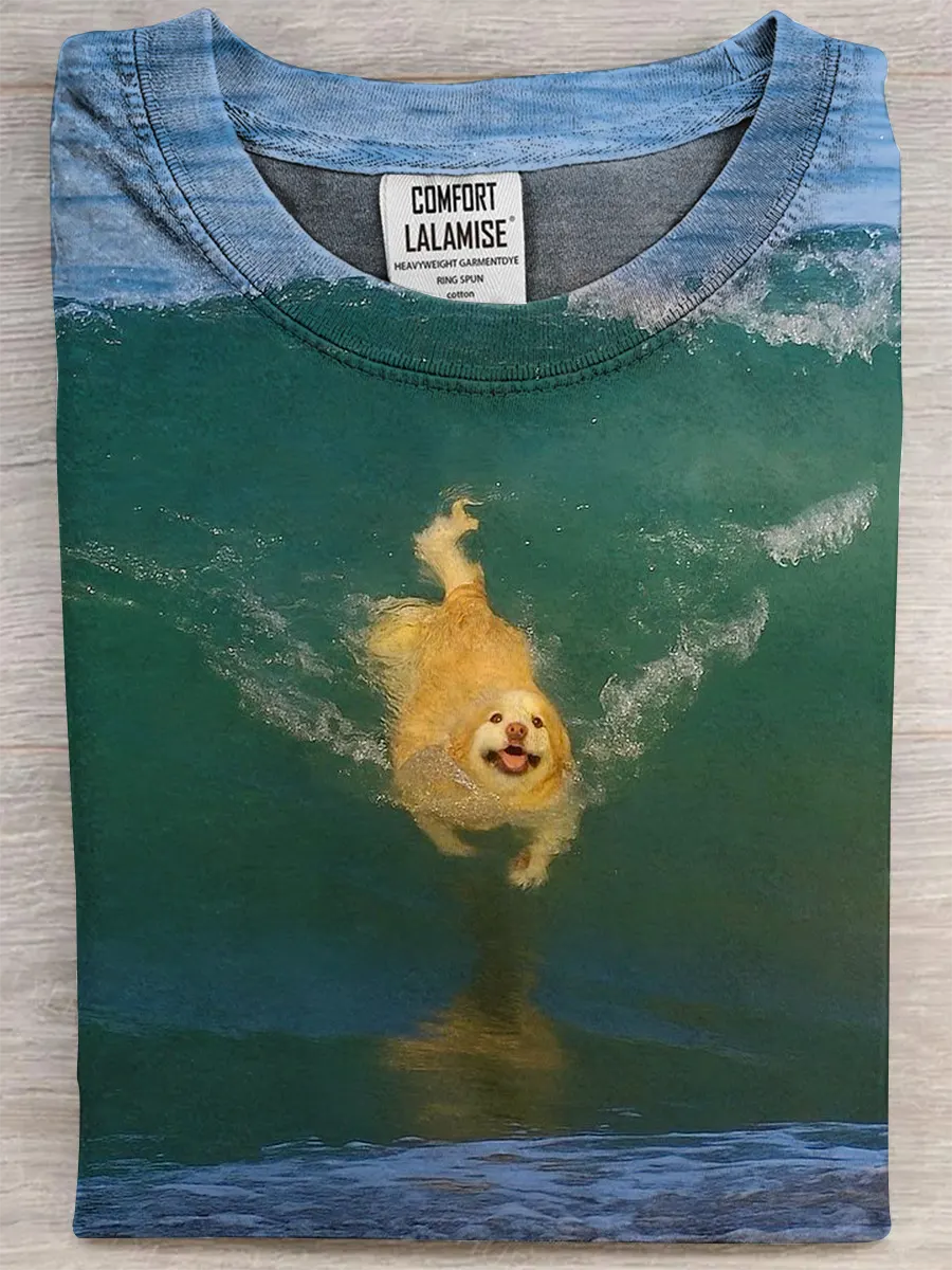 Retro Dog Fun Art Print Casual Pure Cotton Short Sleeved T-shirt$24.99 USD -