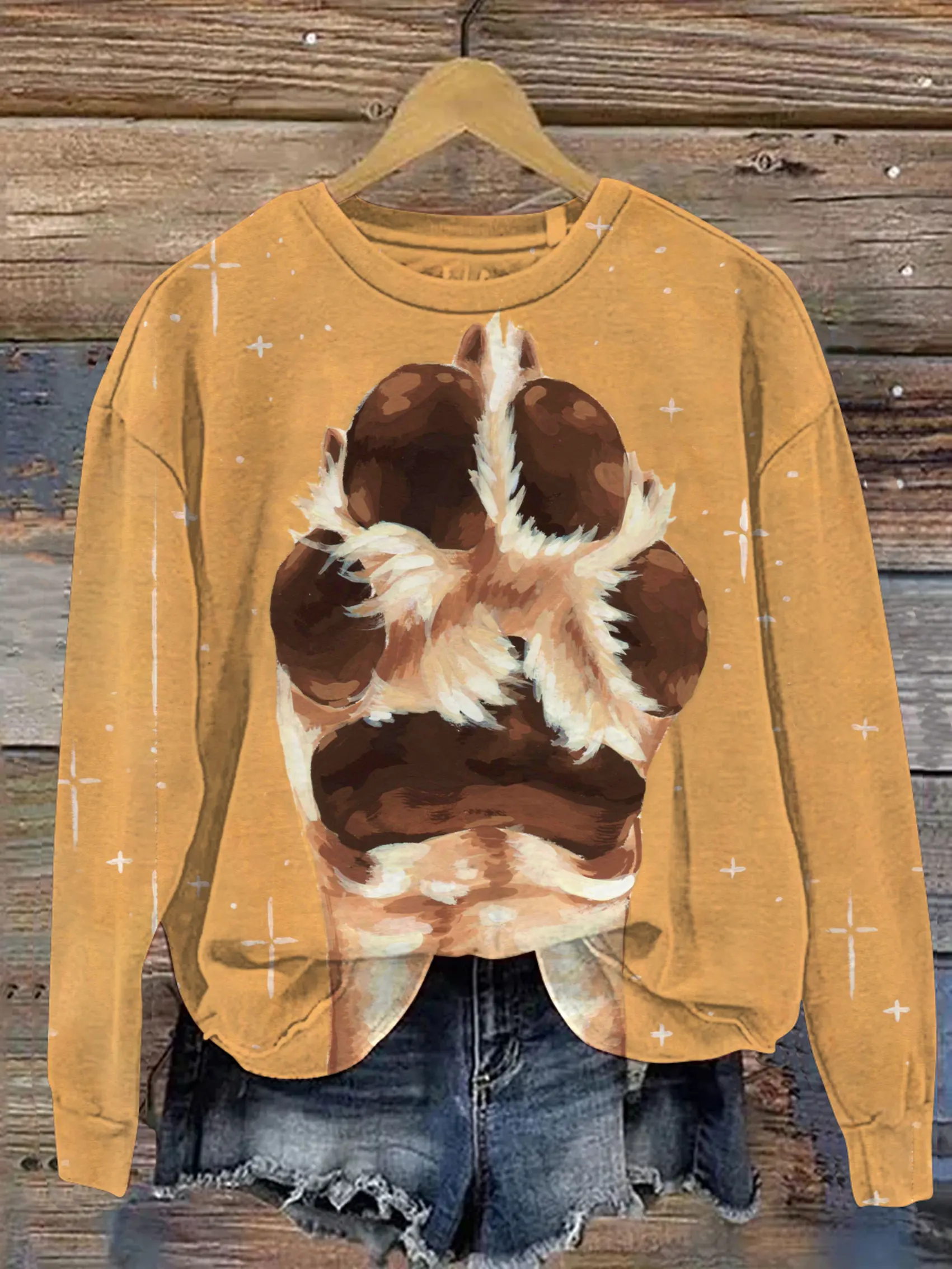 Retro Dog Paw Cute Fun Print Art Print Casual Sweatshirt$29.99 USD -