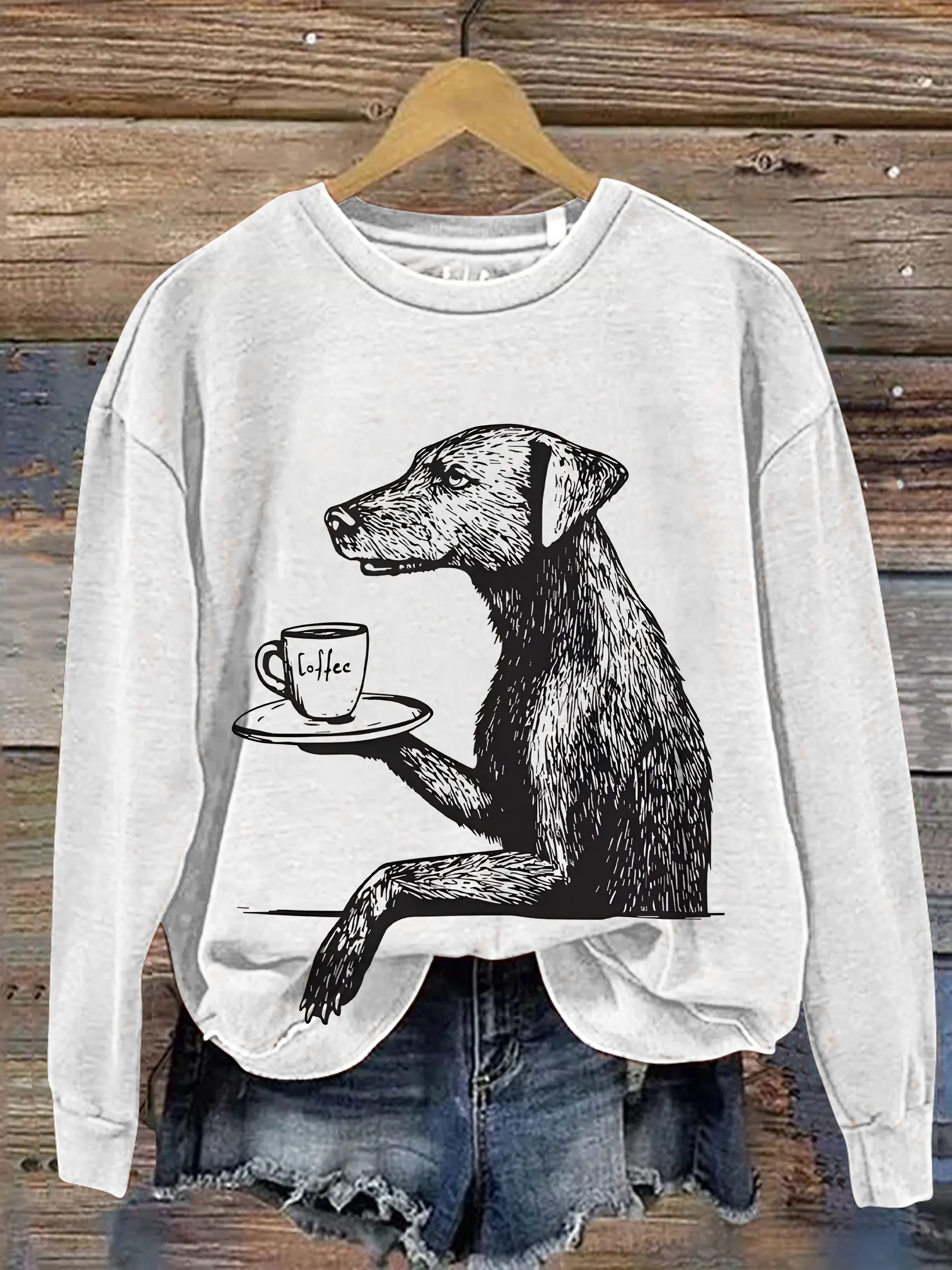 Retro Cute Dog Coffee Print Casual Long Sleeved Sweatshirt$36.99 USD -