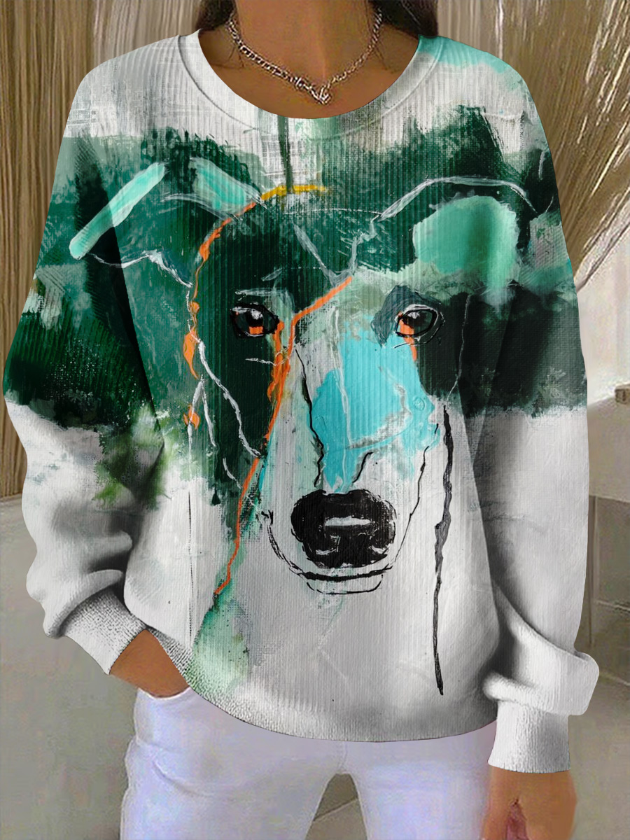 Dog Art Retro Print Casual Sweatshirt$29.99 USD -