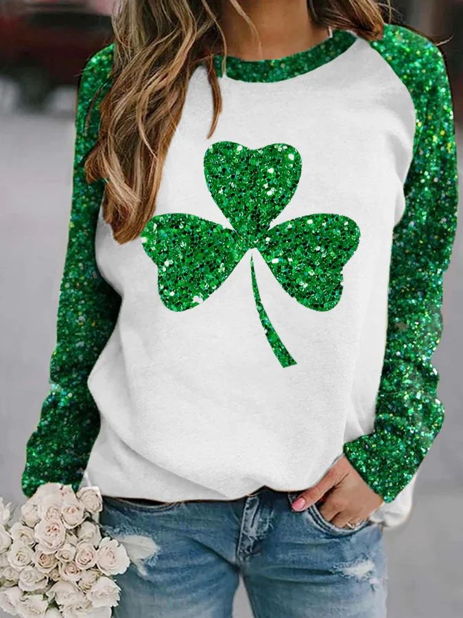 Women's St. Patrick's Day Printed Knit Crew Neck Long-sleeve Top
