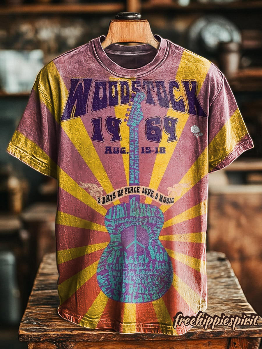 Unisex Woodstock 1969 Art Print Casual Loose Short Sleeve T-Shirt$24.99 USD -