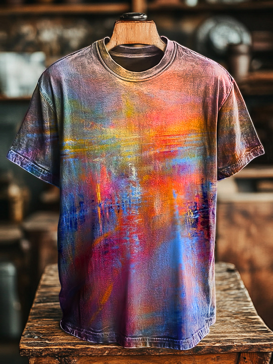 Unisex Vintage Abstract Color Art Print Casual Loose T-Shirt$24.99 USD -