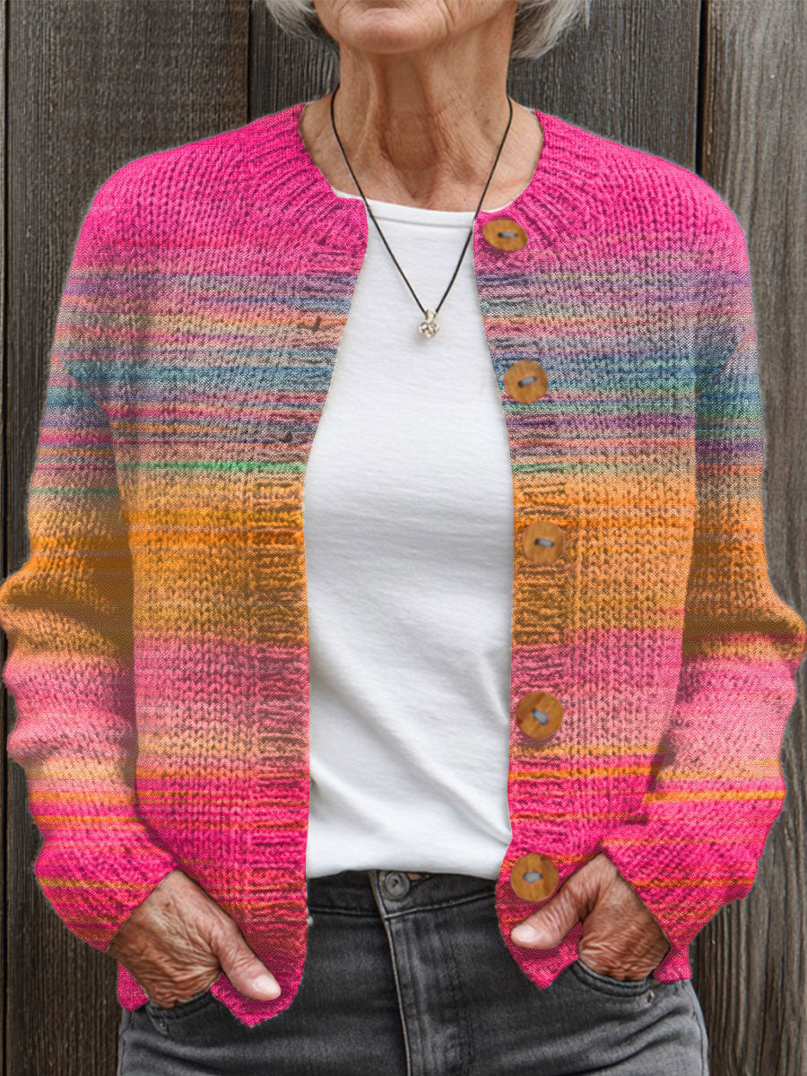 Vintage Gradient Art Print Buttoned Cardigan Sweater$39.98 USD -