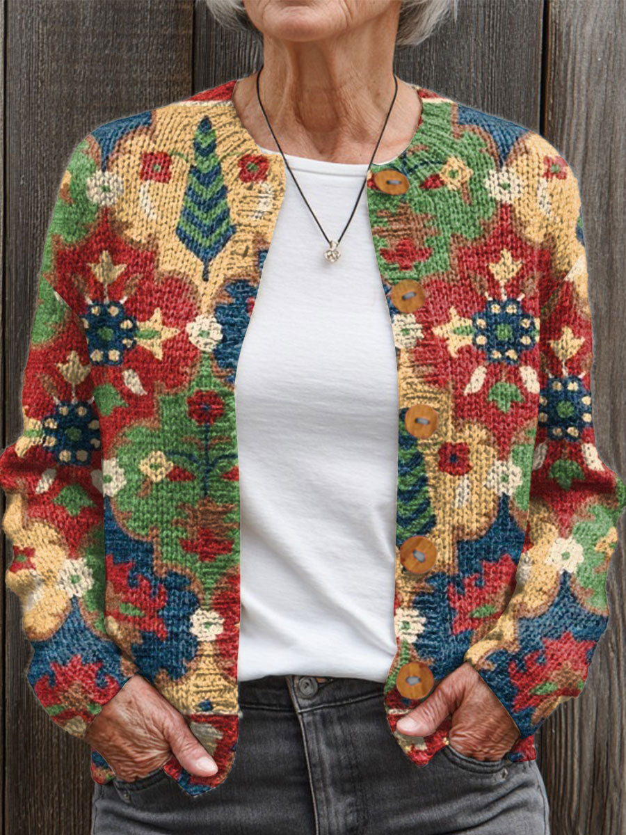 Women's Vintage Patchwork Floral Art Print Casual Cardigan Sweater$48.99 USD -