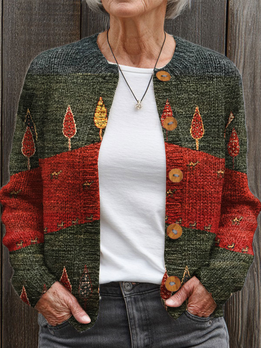 Vintage Art Print Buttoned Cardigan Sweater$39.98 USD -