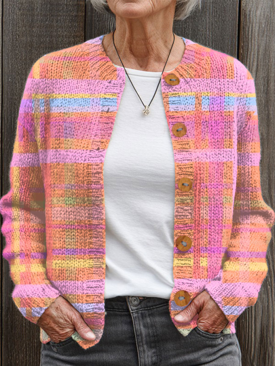Vintage Abstract Plaid Art Print Buttoned Cardigan Sweater$39.98 USD -