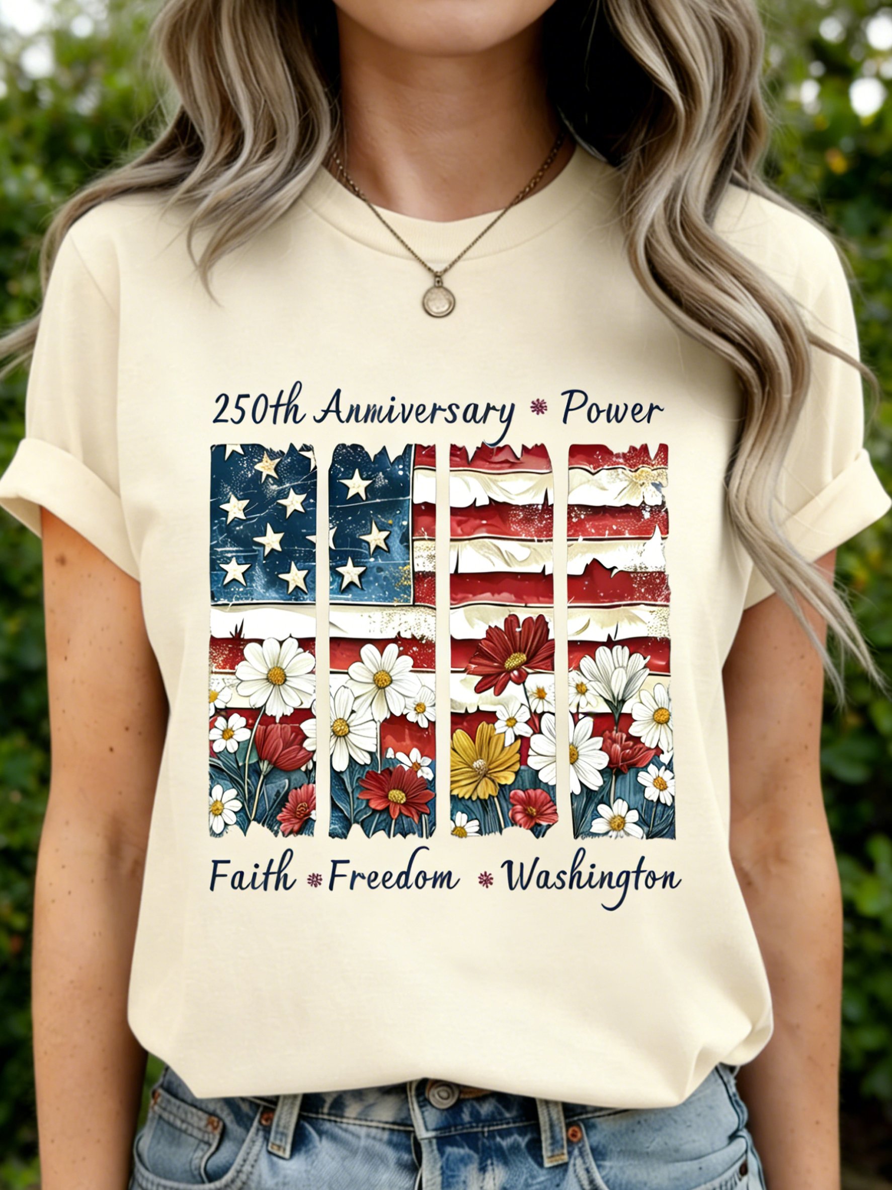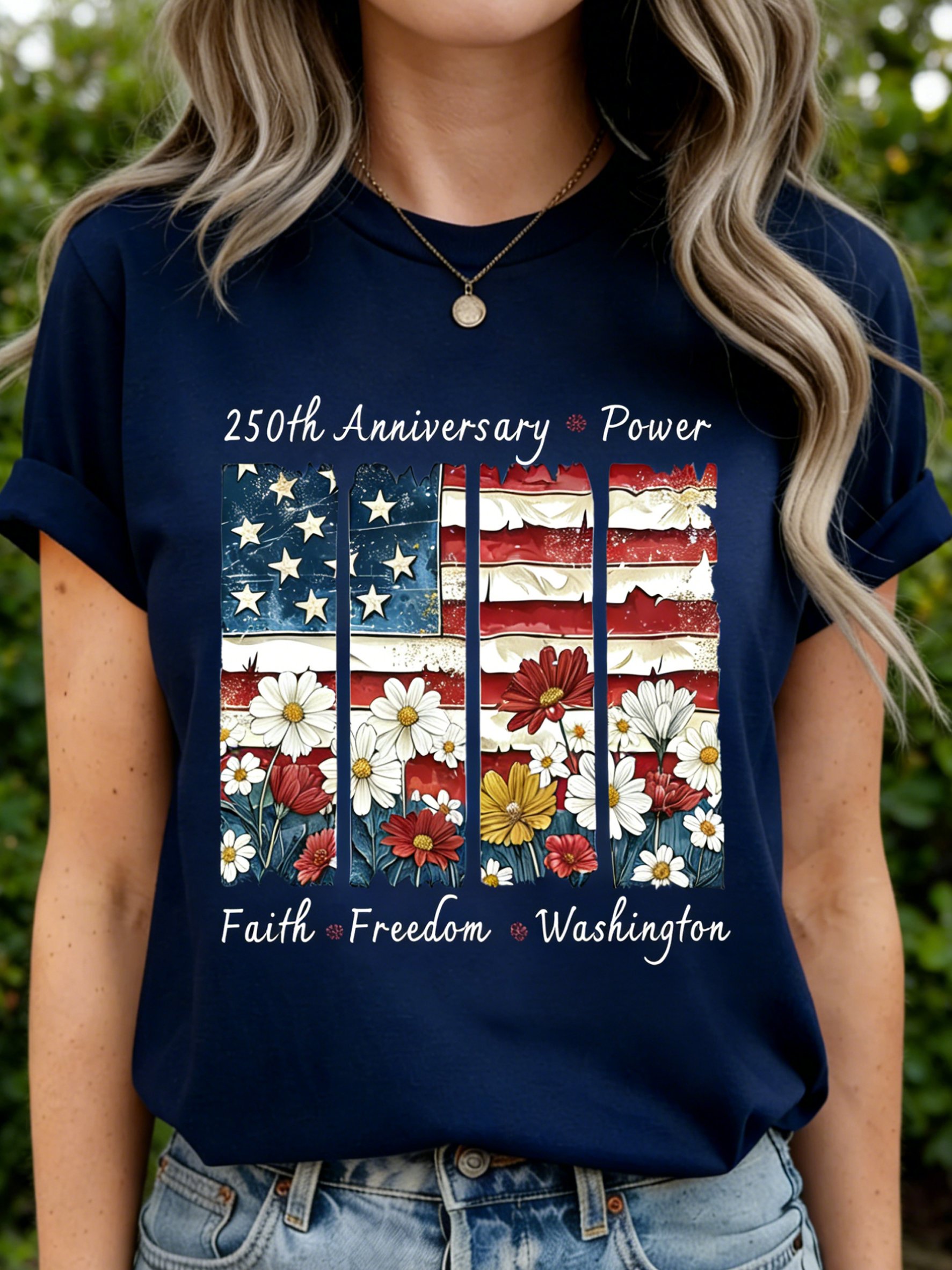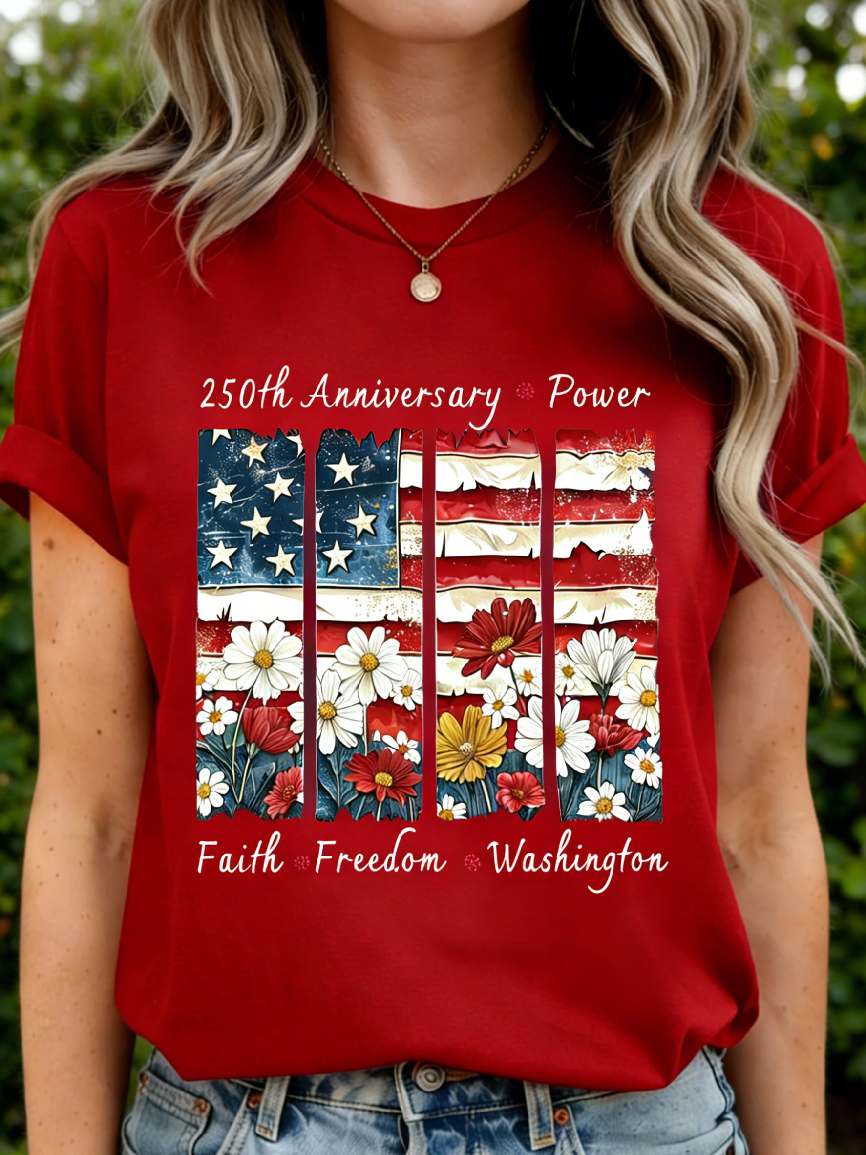 250th anniversary America Flag SLogan Casual T-Shirt