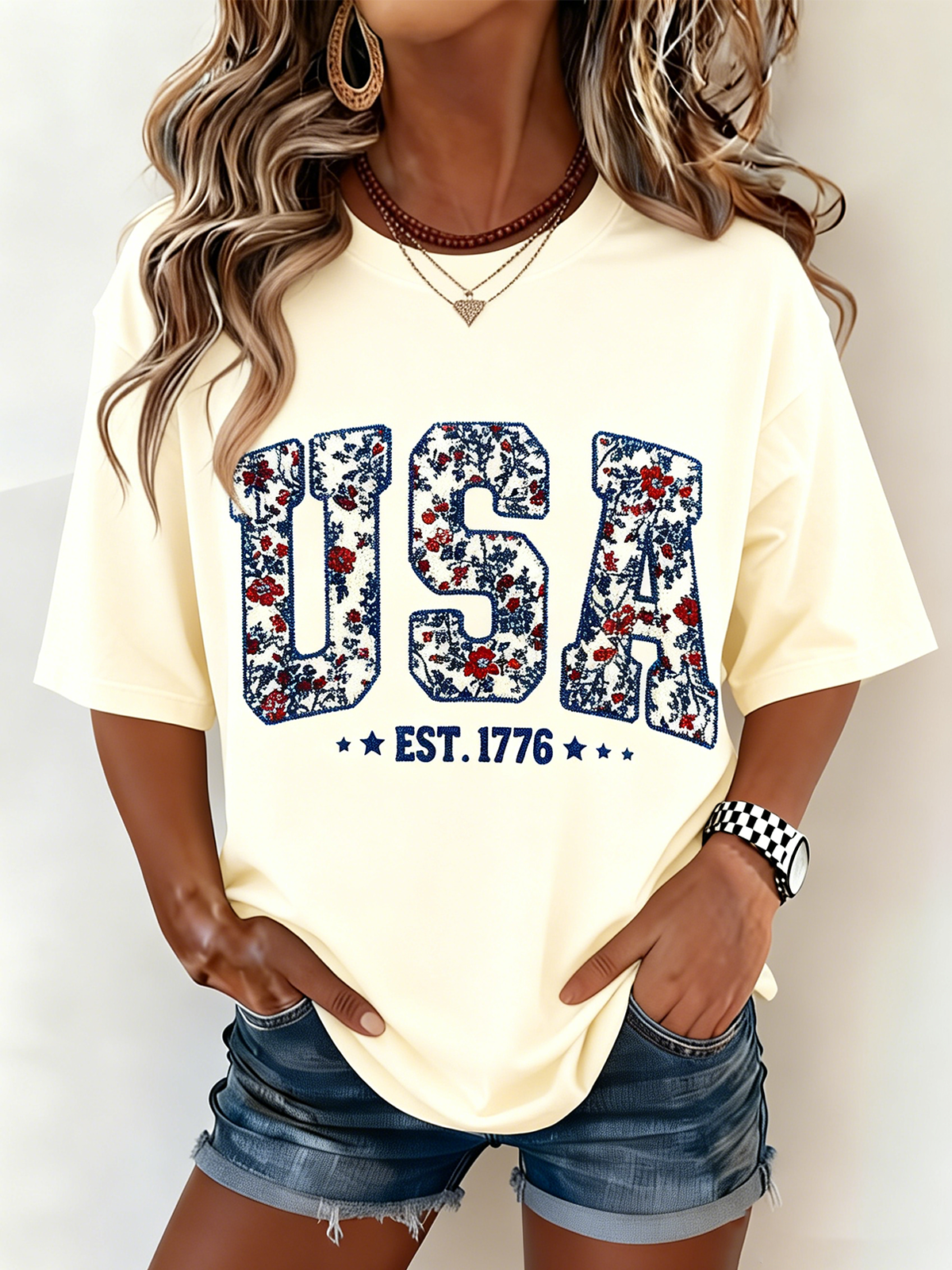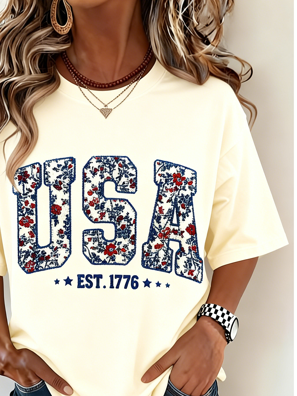 250th anniversary Independence Day Crew Neck Cotton Casual T-Shirt