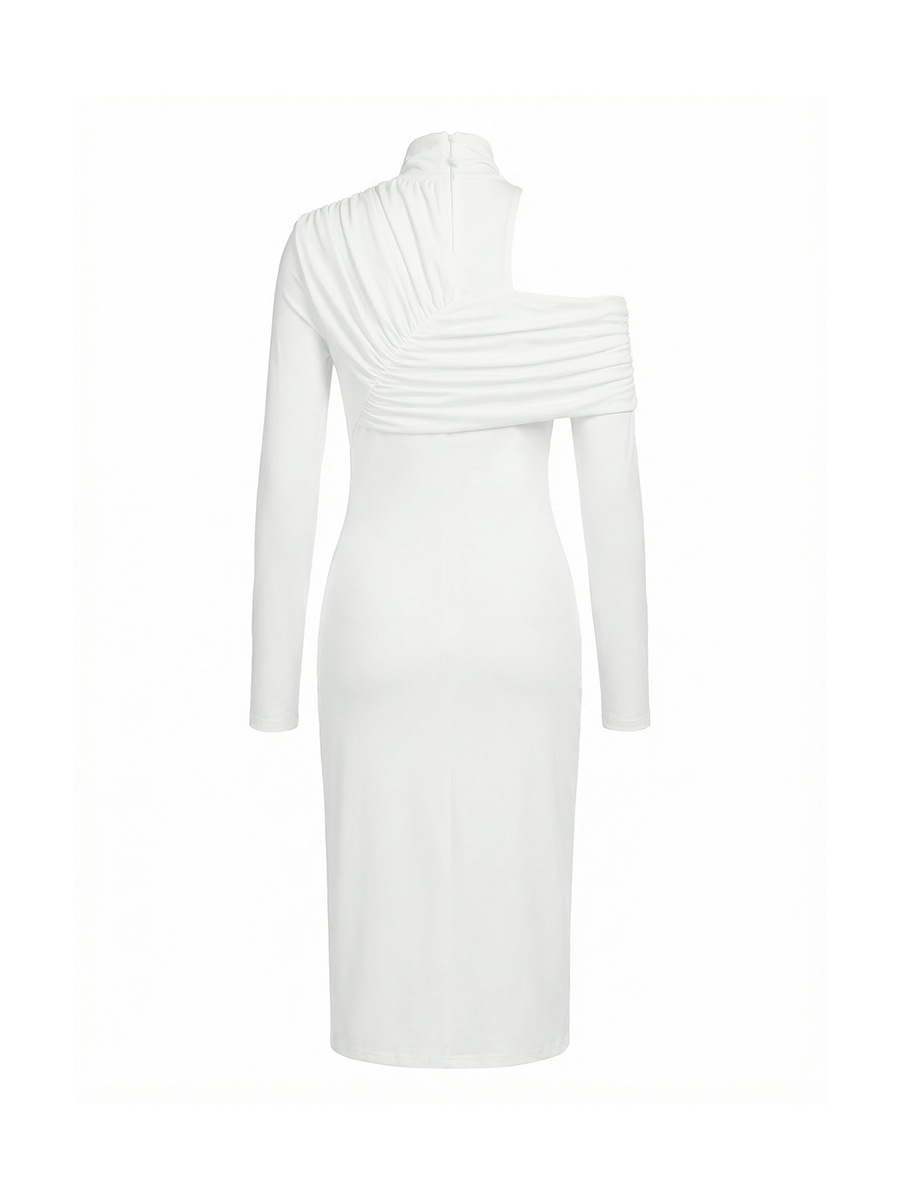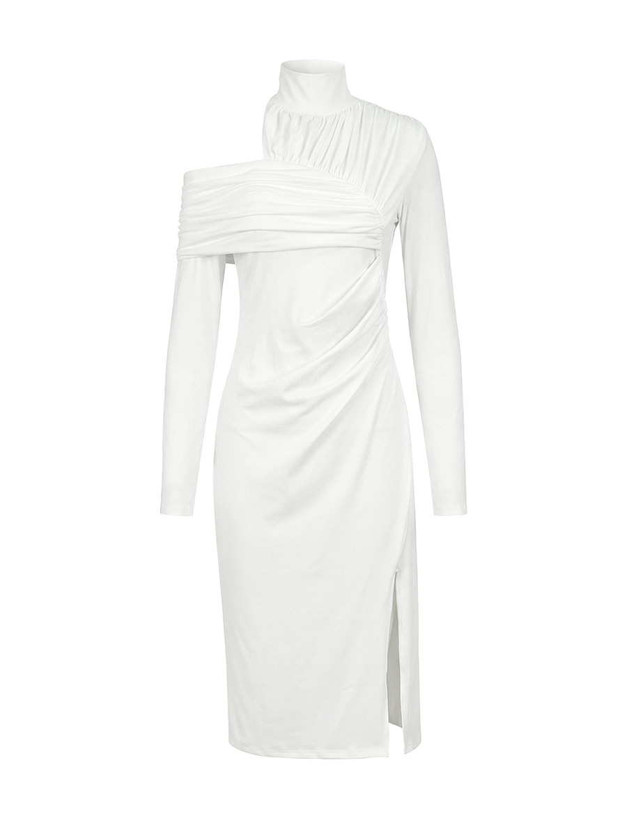 We draw inspiration from the flowing lines of architecture and integrate the elegant contours of the human body with the draping tension of the fabric. This dress not only serves as a piece of clothing, but also functions as a wearable modern sculpture. We choose a high-elastic, soft and comfortable thick fabric, which not only provides sufficient support to shape a three-dimensional silhouette but also gently adheres to the skin, offering a second-skin-like comfort. Whether it's a red carpet dinner or an important appointment, it can make you the center of attention, confident yet not ostentatious.