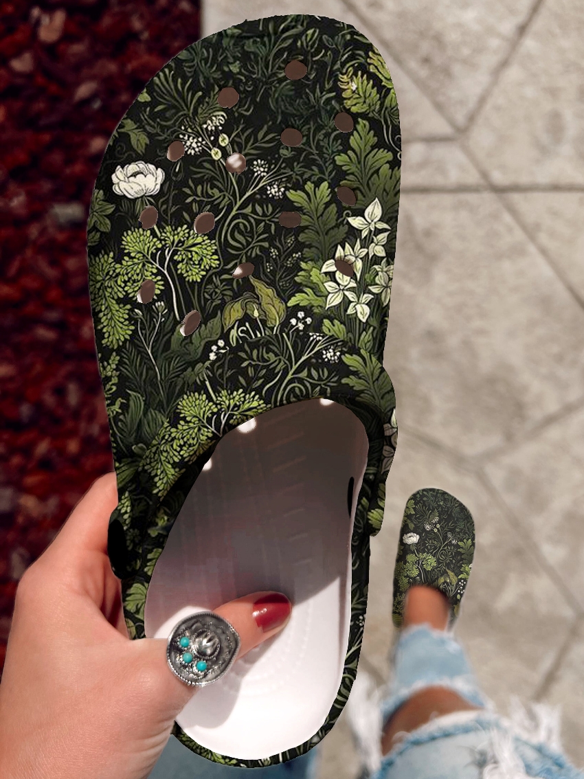 Botanical Floral Pattern Art Print Casual Hole Slippers