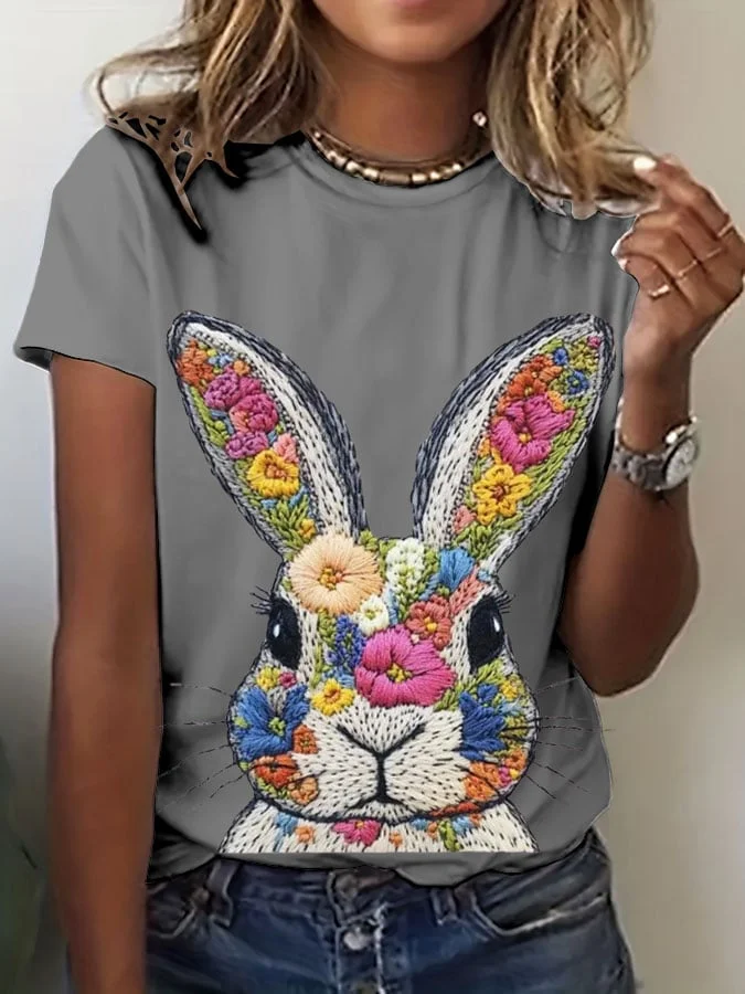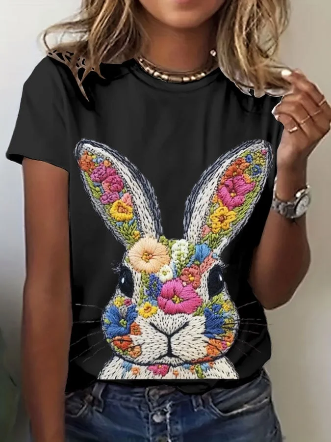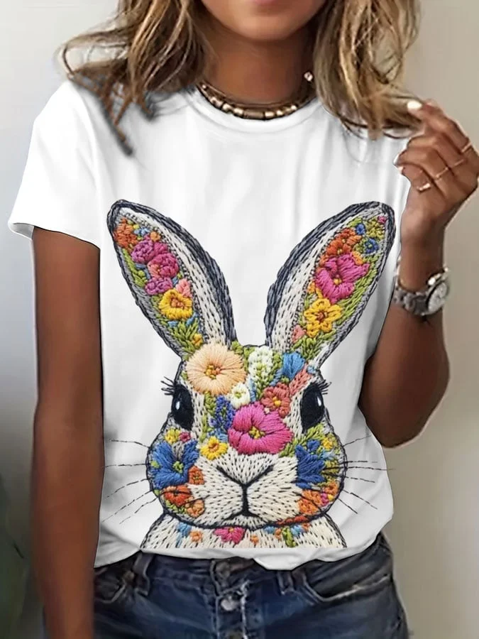 Casual Easter Bunny print T-shirt