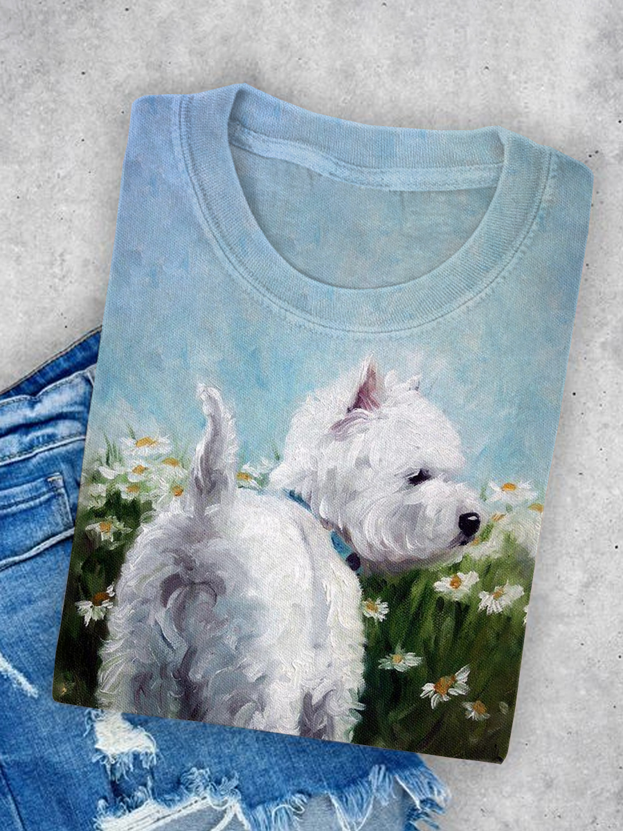 Cute Dog Art Print Casual Short Sleeve T-Shirt