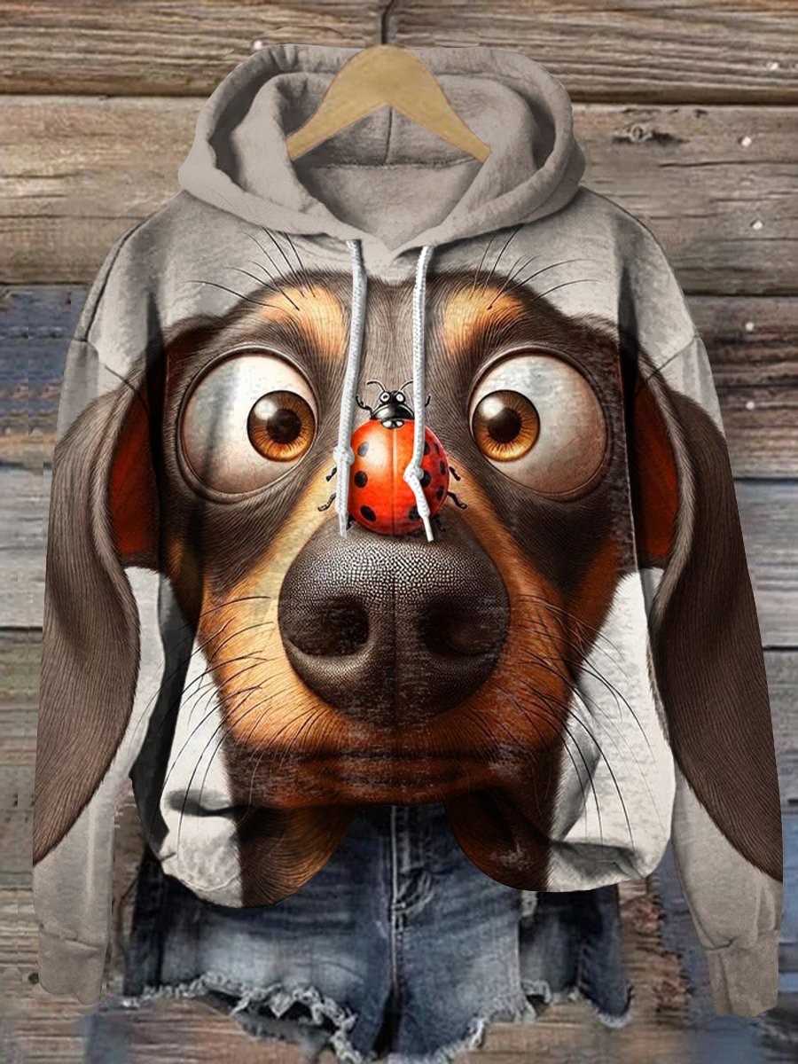 Dachshund And Ladybird Art Print Casual Short Sleeve T-shirt
