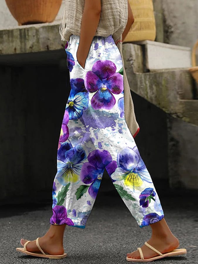 Floral Print Wide-Leg Pants