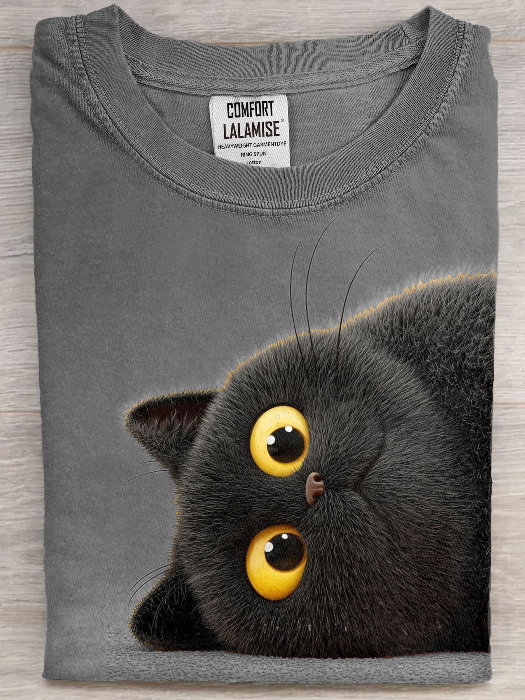 Funny Black Cat Art Print Casual Short Sleeve T-shirt