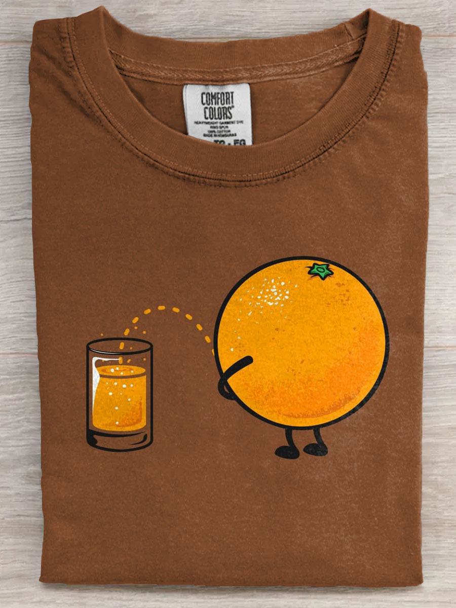 Funny Orange Juice Come From Art Print Casual Short Sleeve T-shirt