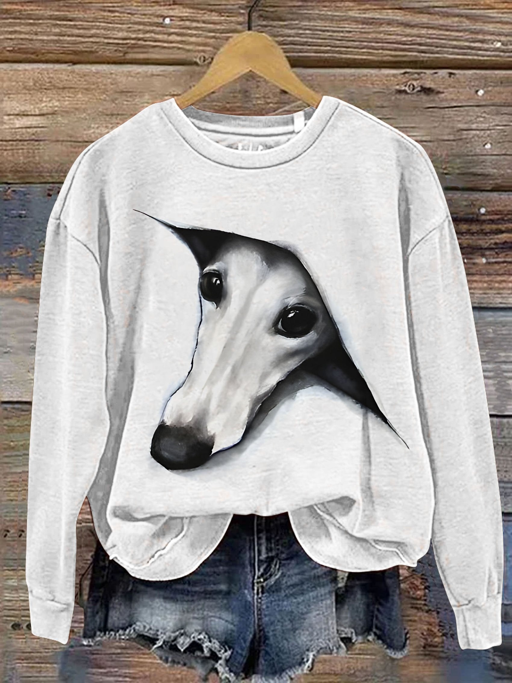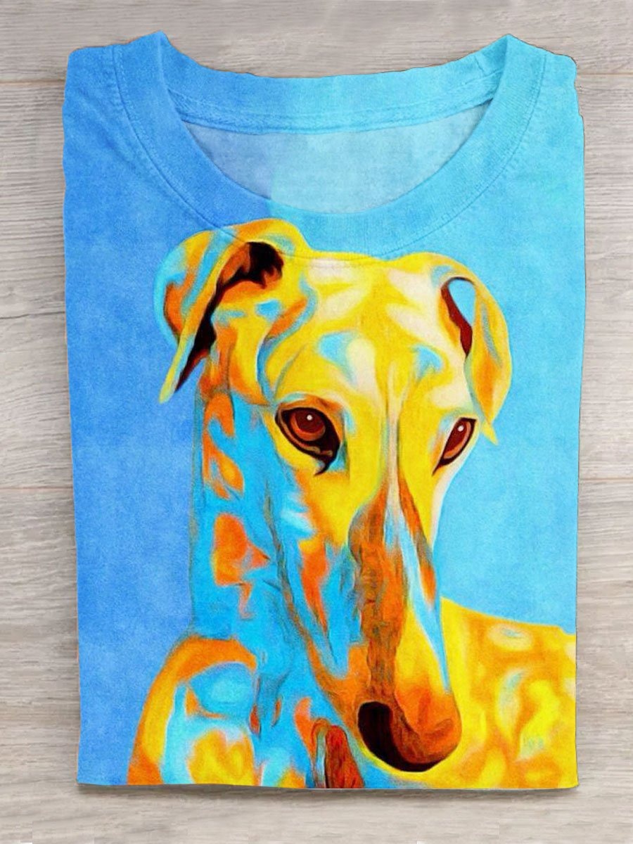 Greyhound Cute Dog Lover Art Casual Print T-shirt