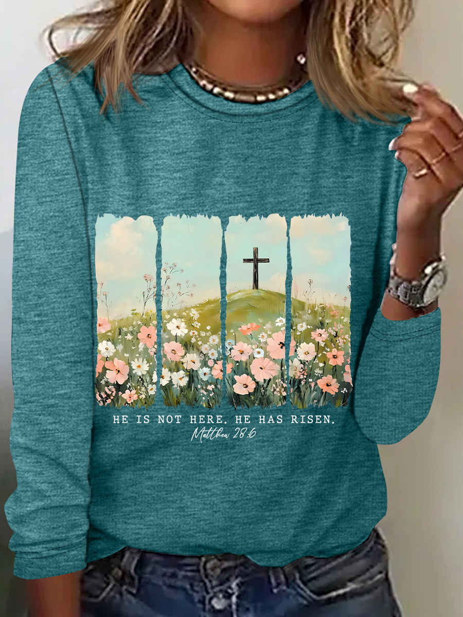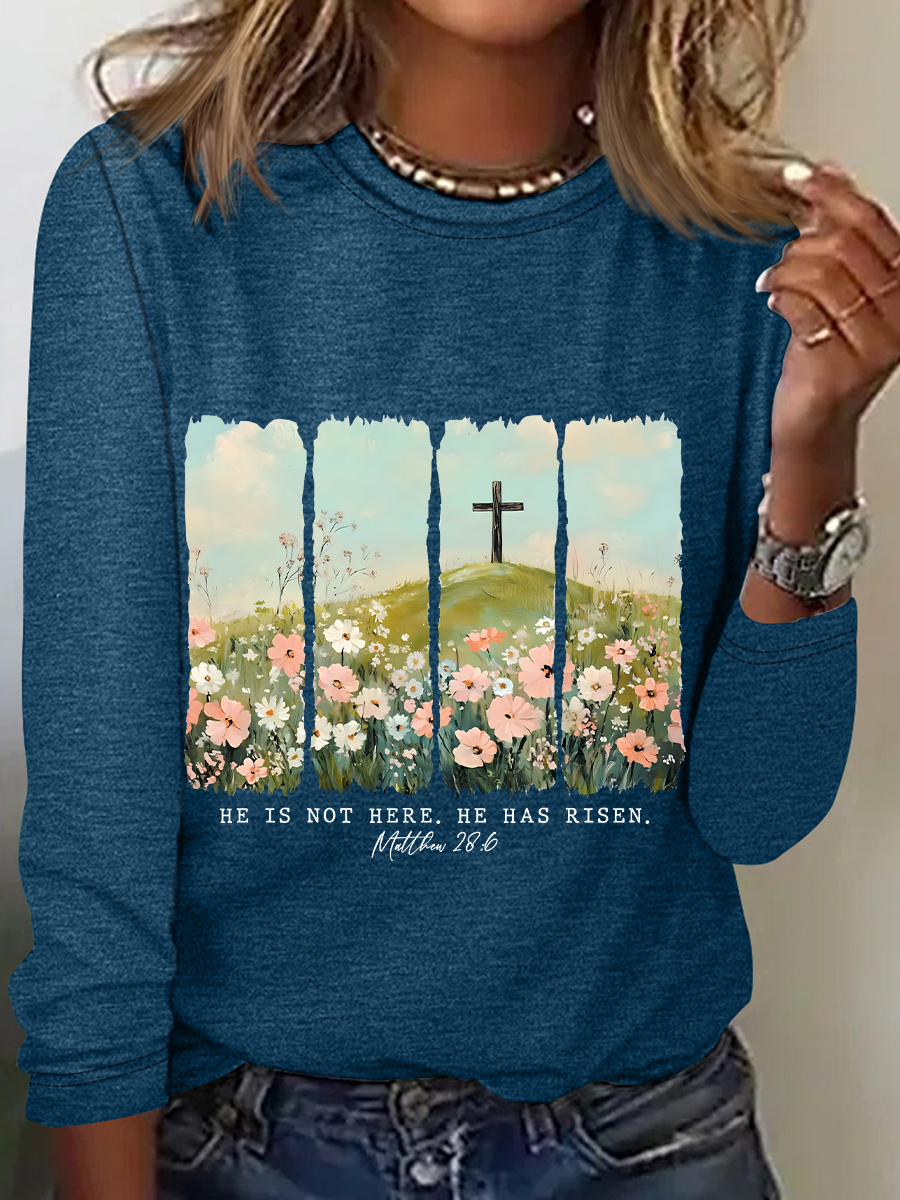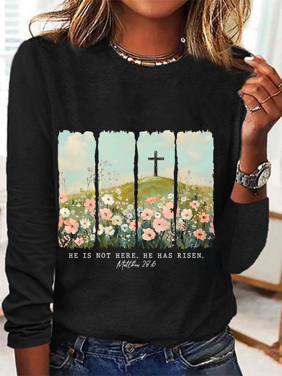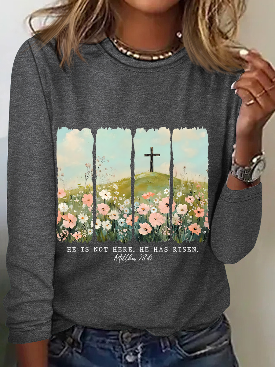 He Is Risen Png Wildflower Spring Easter Casual Long Sleeve Shirt