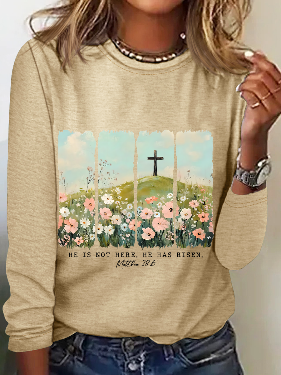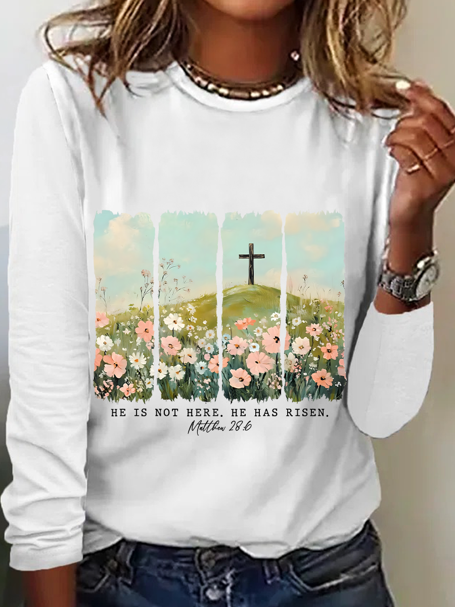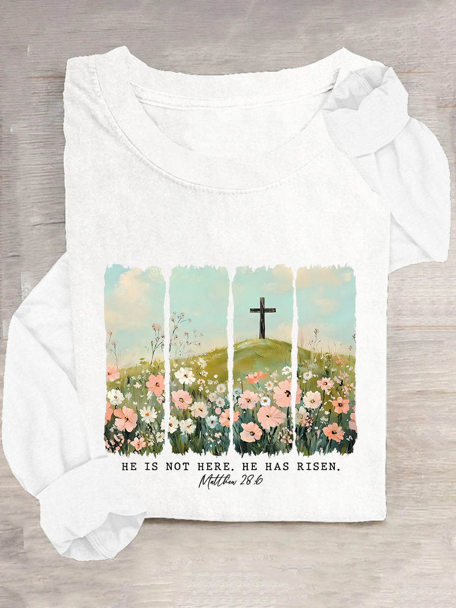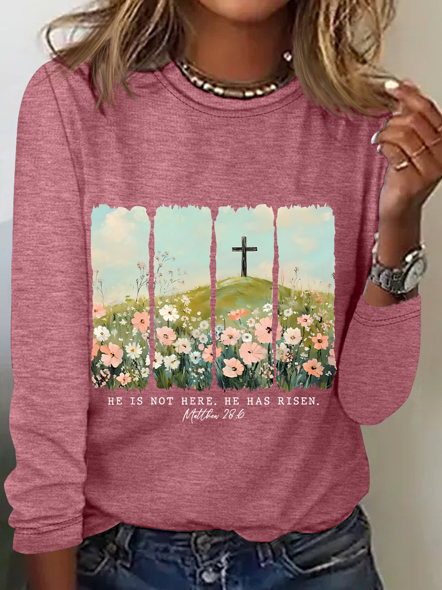 He Is Risen Png Wildflower Spring Easter Casual Long Sleeve Shirt