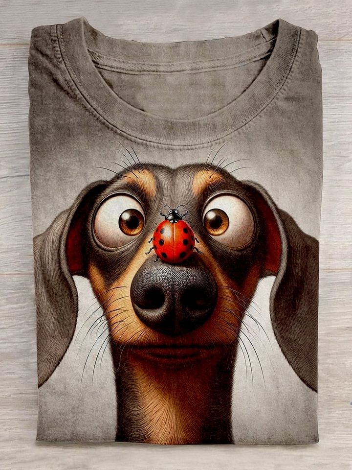Hound Dog Art Print Casual Cotton Short Sleeve T-shirt
