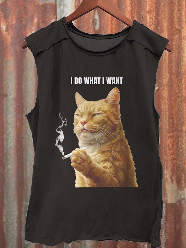 I Do What I Want Cat Print Casual Short Sleeve T-Shirt