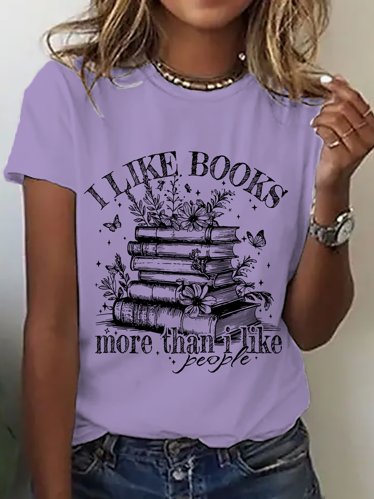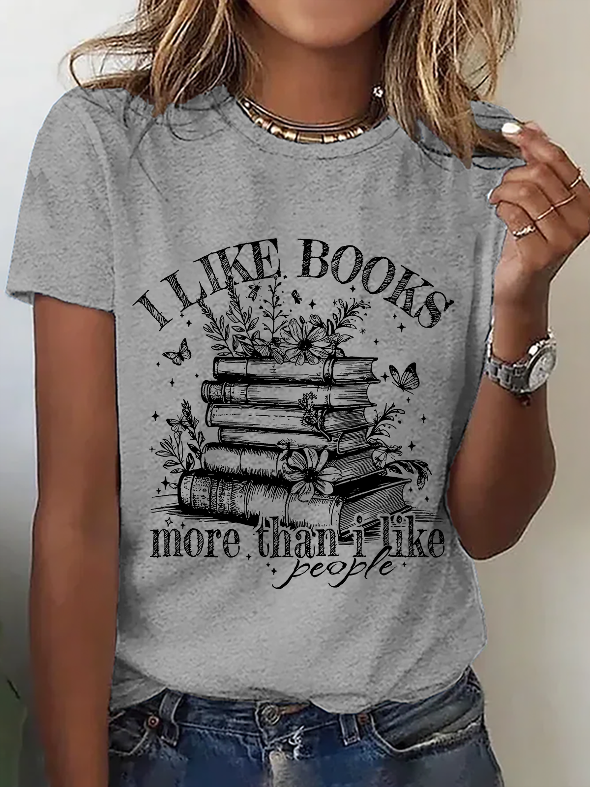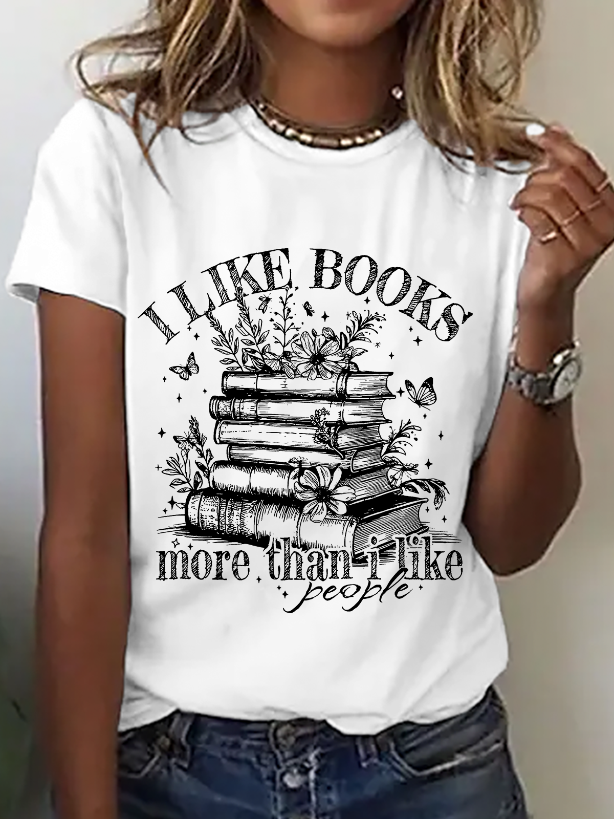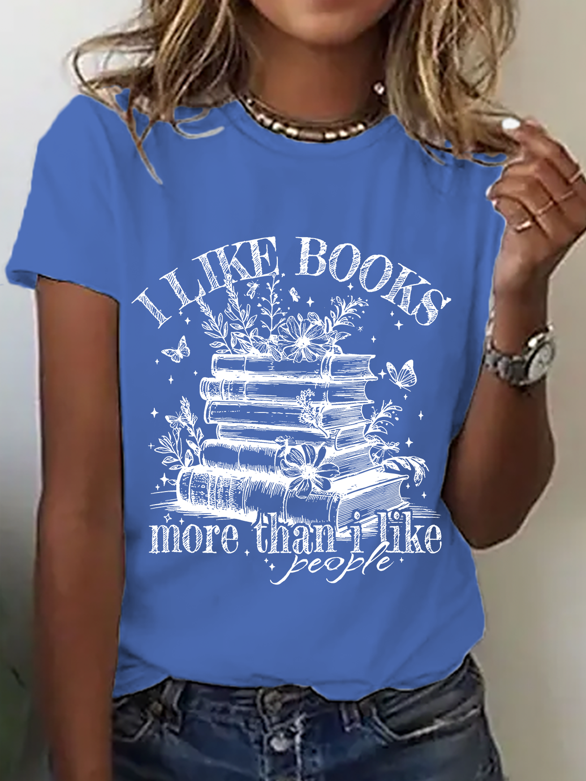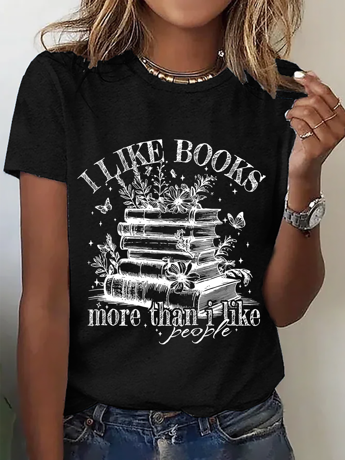 I Like Books More Than I Like People Boho Floral Book Lover Cotton T-Shirt