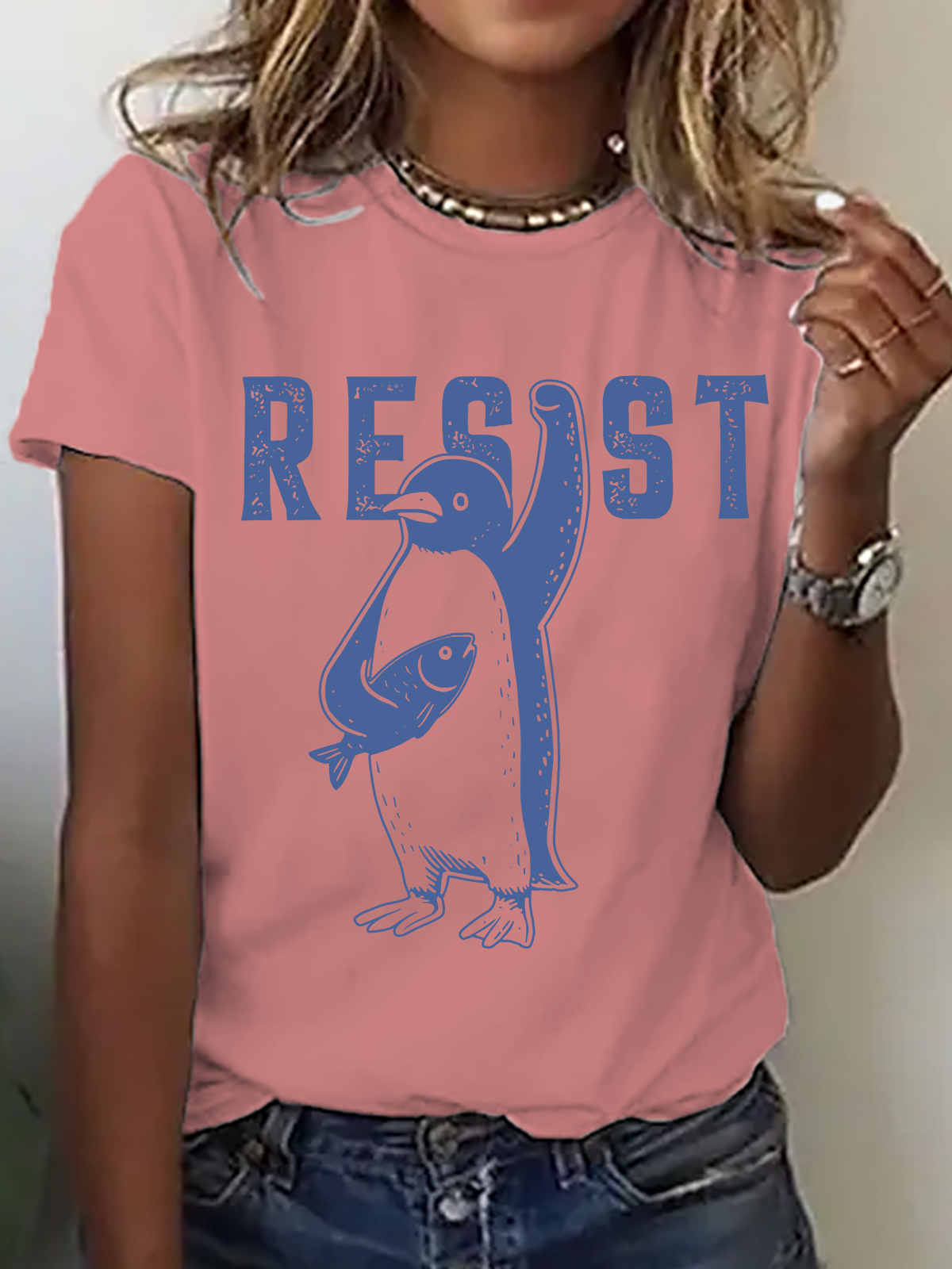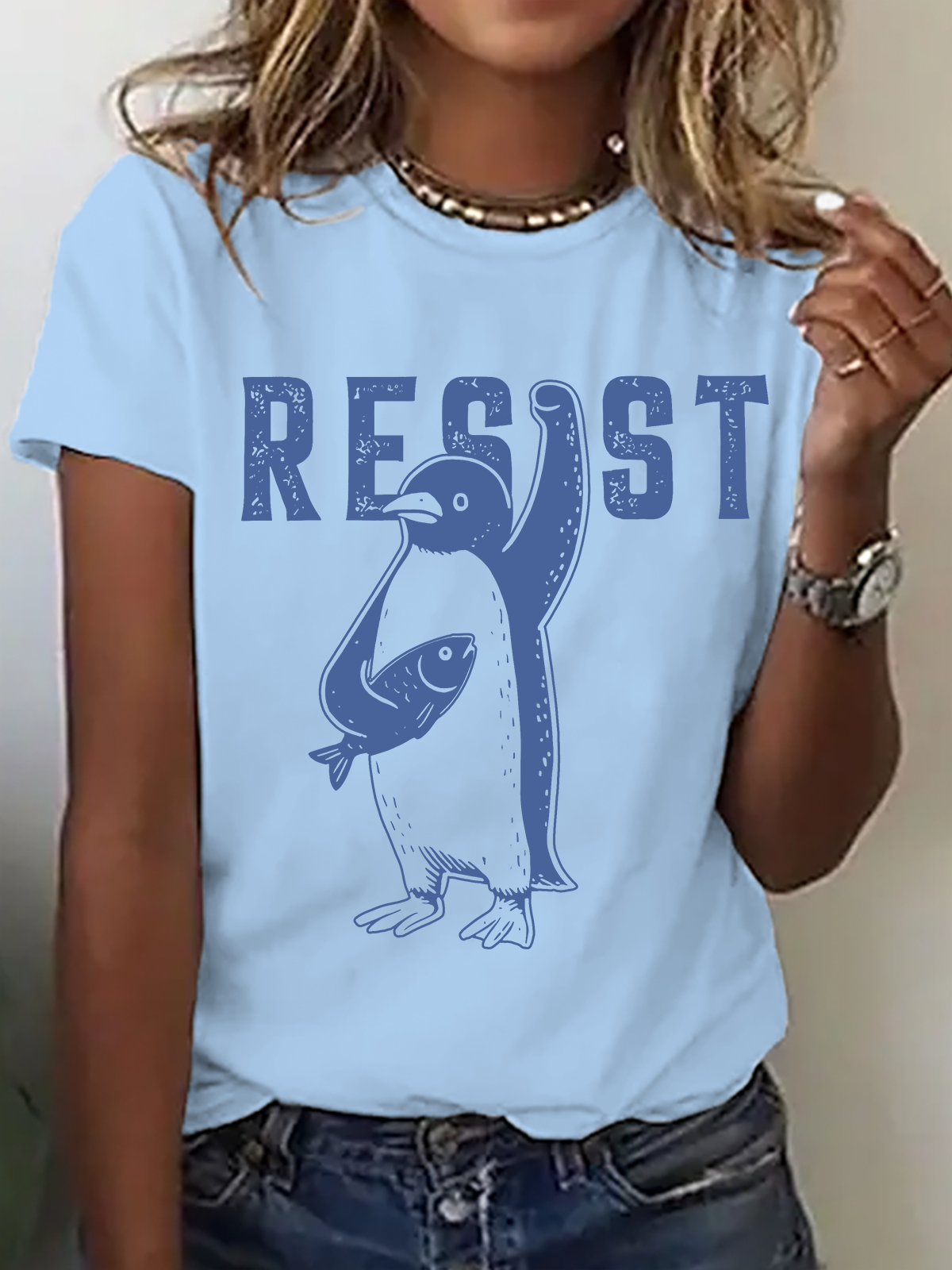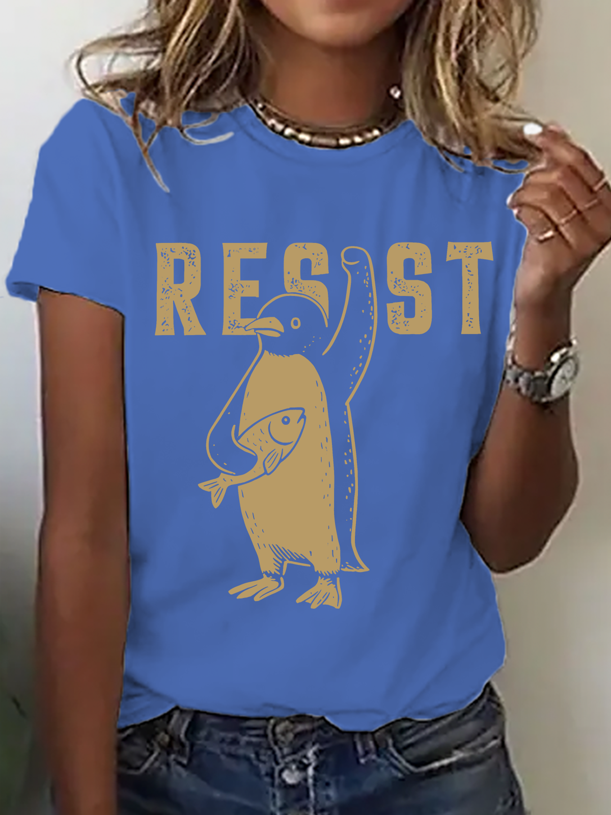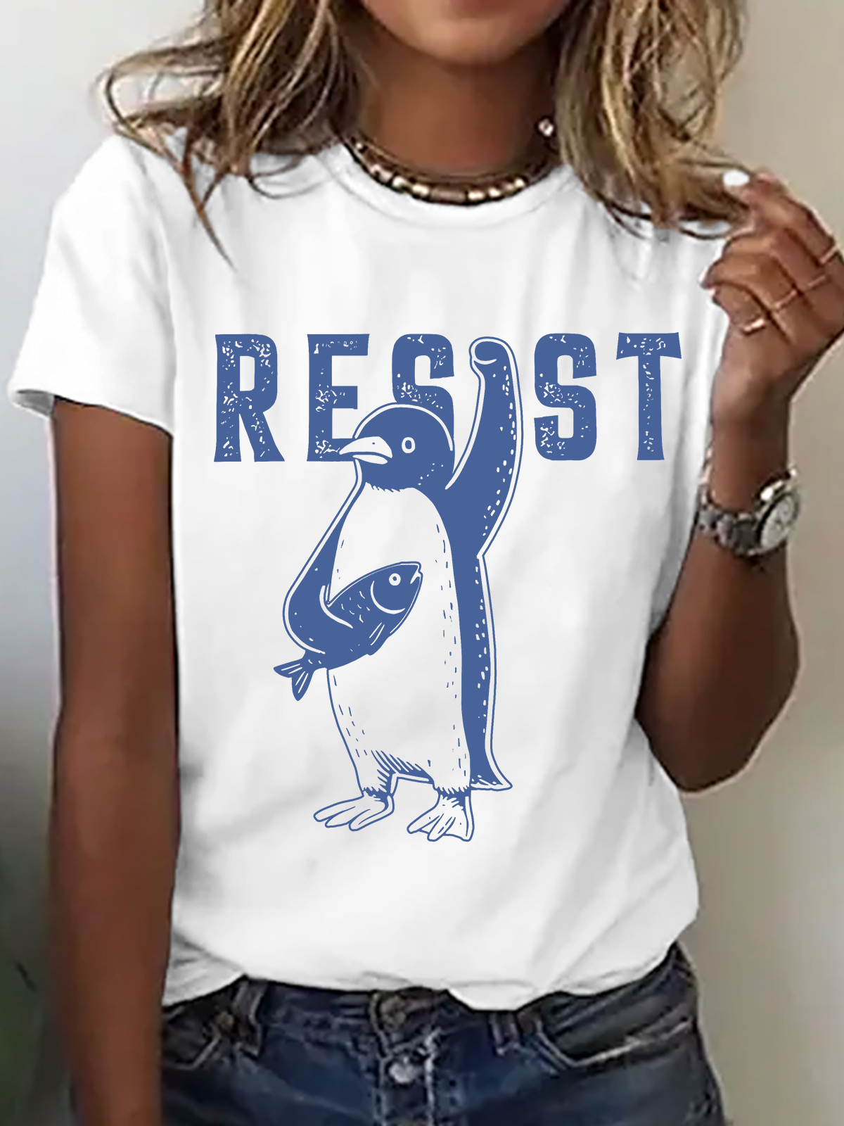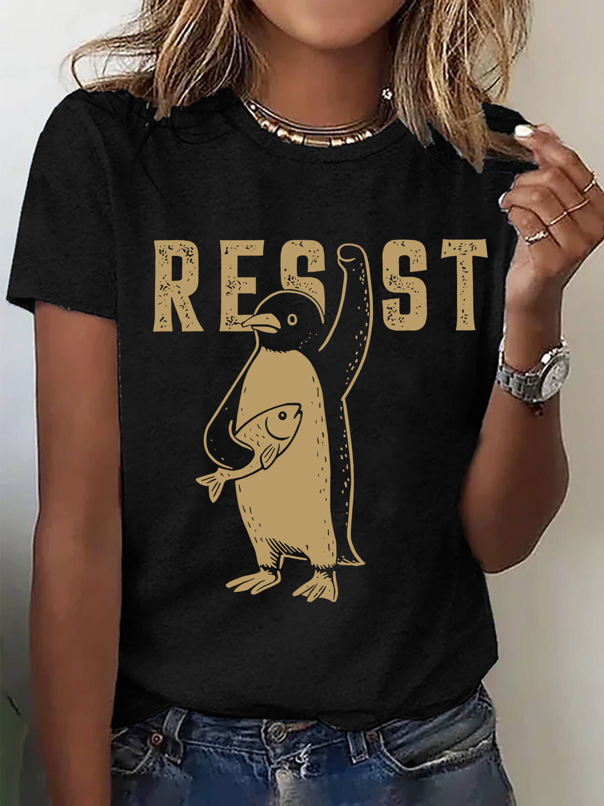 Resist Penguin Activism Graphic Design Cotton T-Shirt