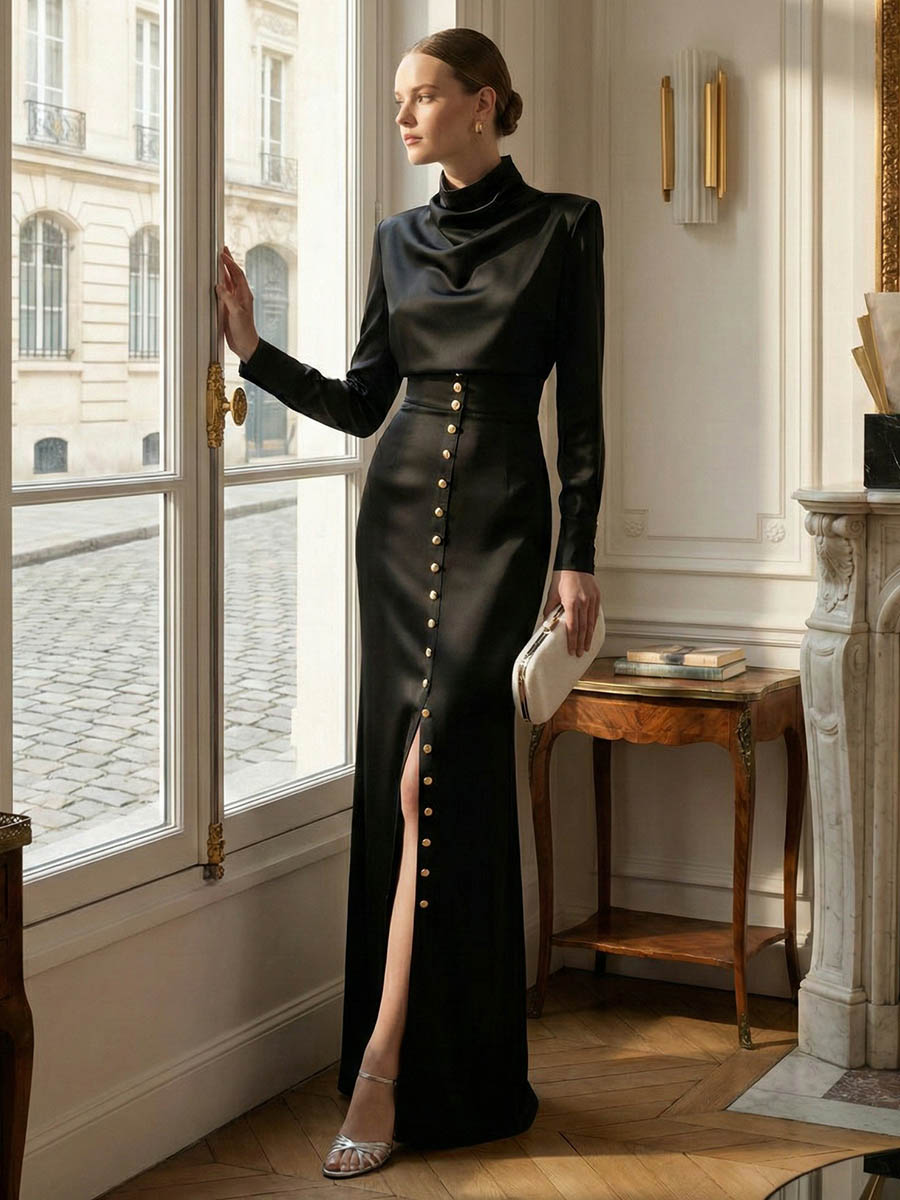 | Feature | Buttoned , Contrast Color , Pleated , Asymmetric , Split-side , Split-joint , Zipper |