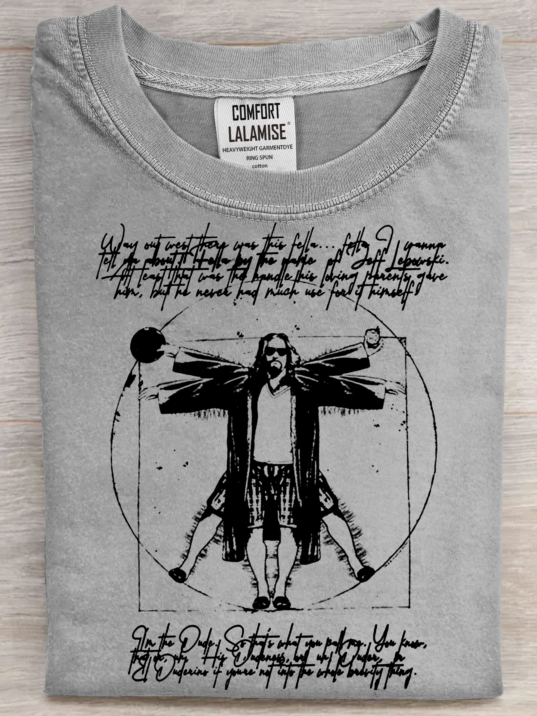 The Dude your opinion man Vitruvian Man The Big Lebowski Print Casual Short Sleeve T-shirt