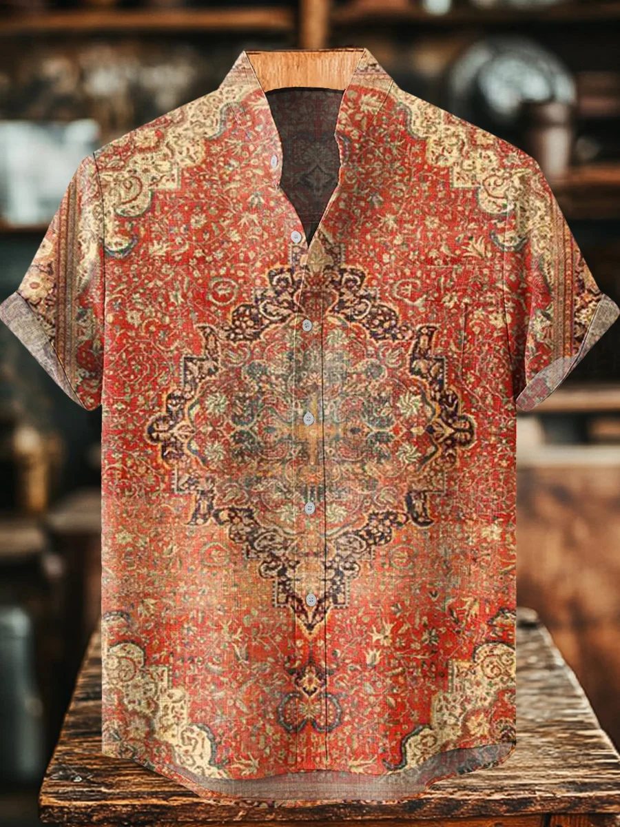 Unisex Retro Ethnic Geometric Printing Casual Loose Short Sleeve T-Shirt