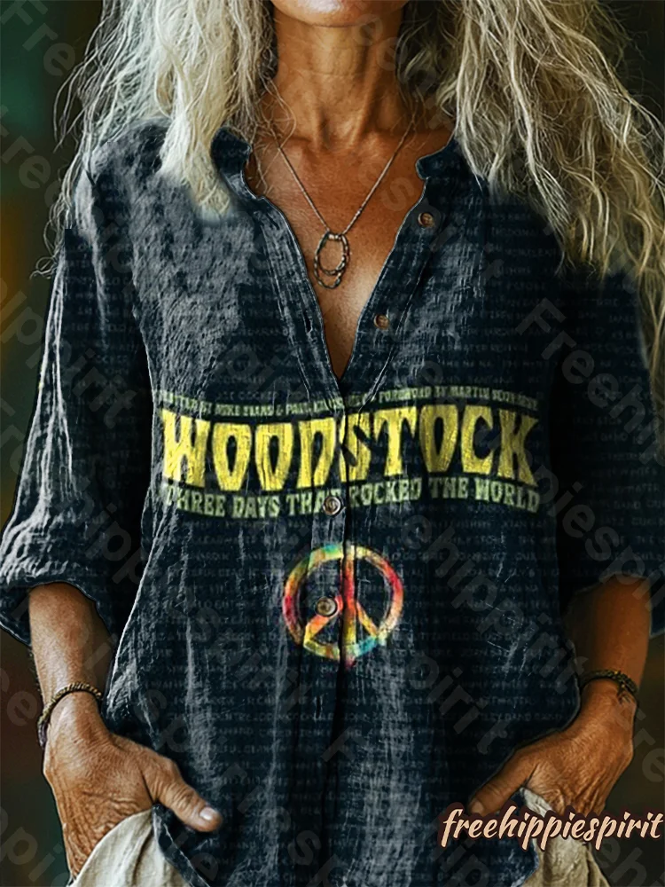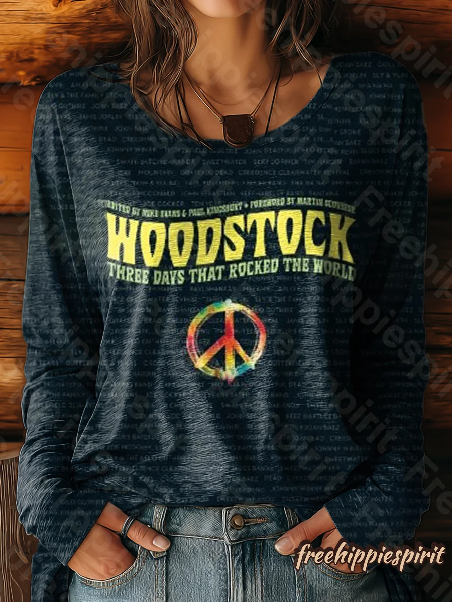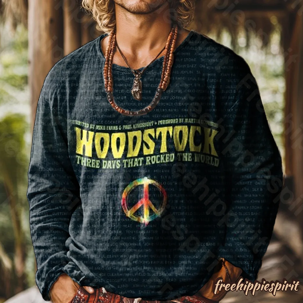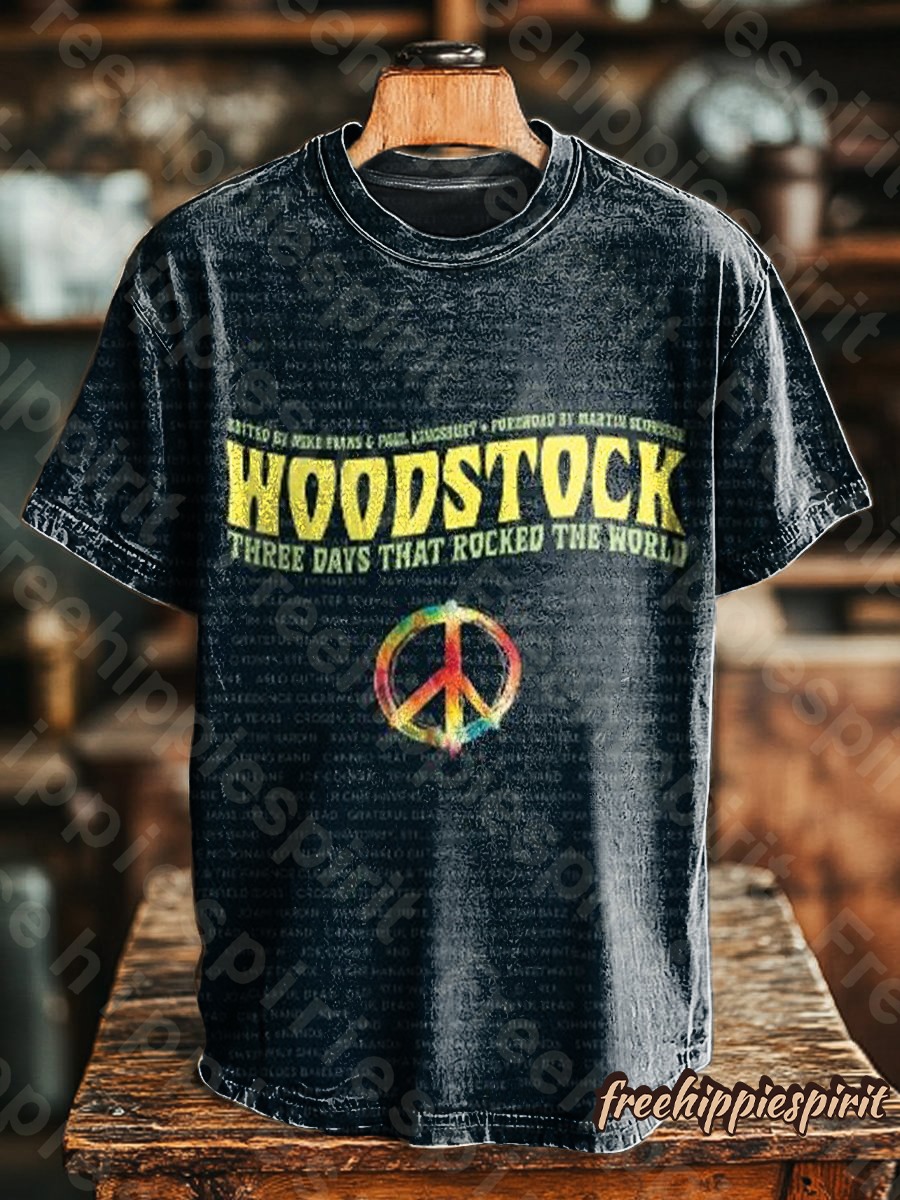 Unisex Woodstock Art Print Casual Loose Short Sleeve T-Shirt