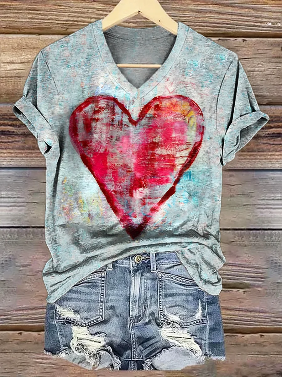 Valentine's Day Vintage Graffiti Heart Art Pattern Print Crew Neck T-shirt