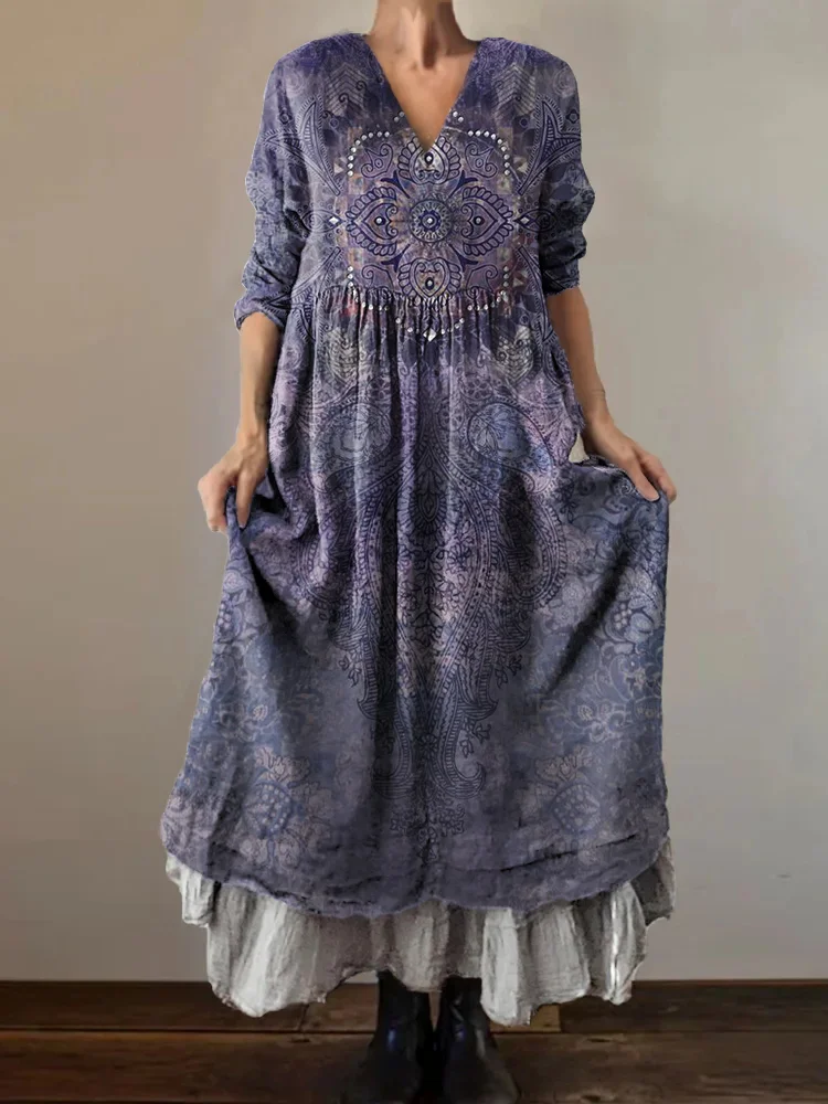 Vintage Ethnic Style Tattoo Pattern Art Print Cotton Round Neck T-Shirt