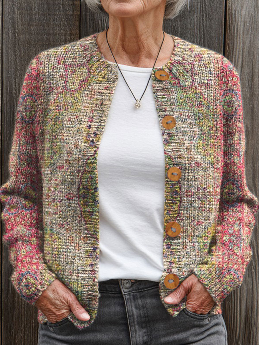 Vintage Flower Art Print Buttoned Cardigan Sweater