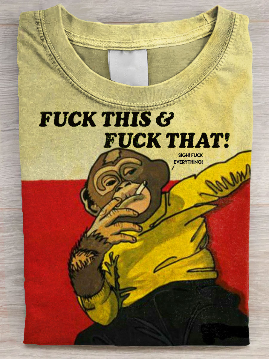 Vintage Funny Fuck Everthing Art Print Casual Short Sleeve T-shirt