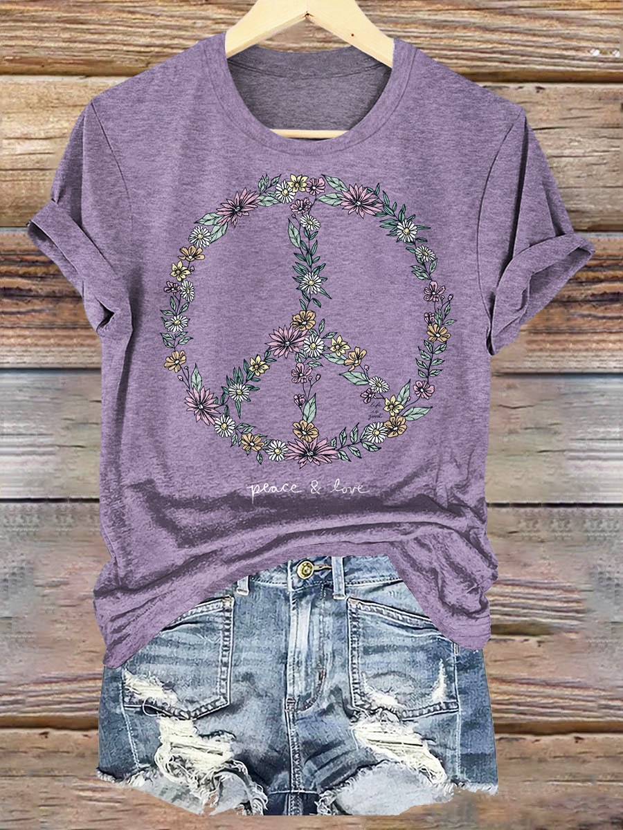 Wildflower Love Peace Print Crew Neck T-shirt