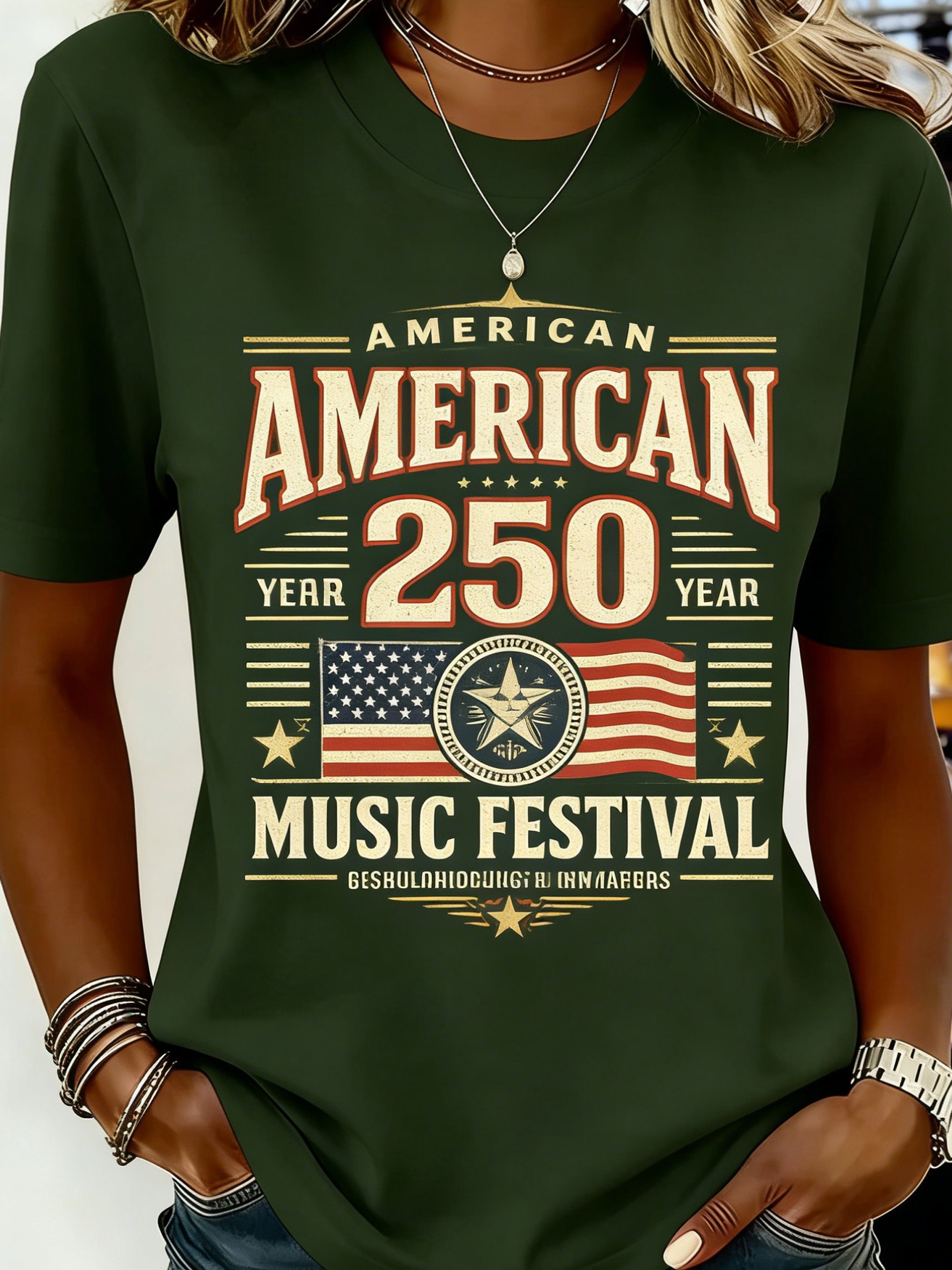 Women's 250th Anniversary Of The Founding Of the United States Cotton Vintage Short Sleeve Crew Neck 3D Printing Daily Going Out Casual T-Shirt