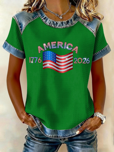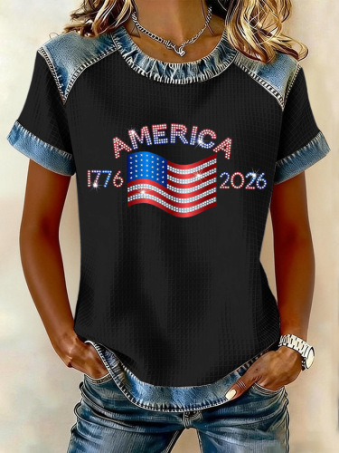 Women's 250th Anniversary Of The Founding Of the United States Short Sleeve T-shirt Summer Text Letters Printing Jersey Crew Neck Daily Going Out Casual Top