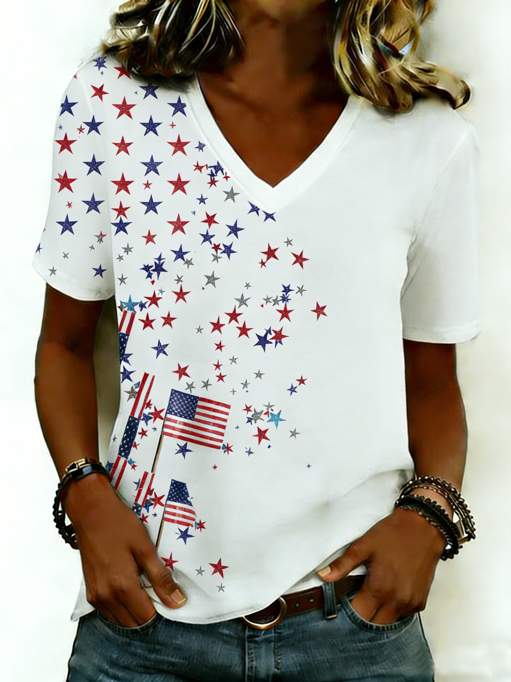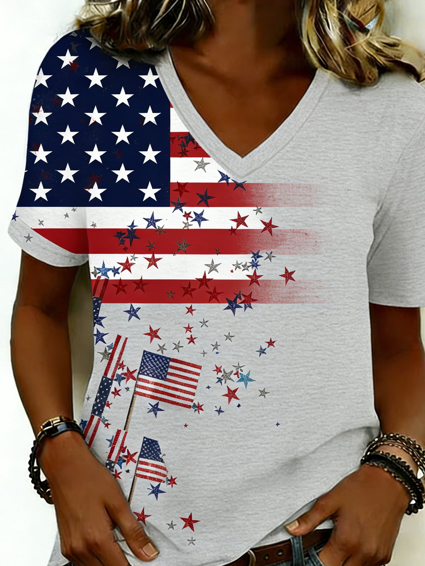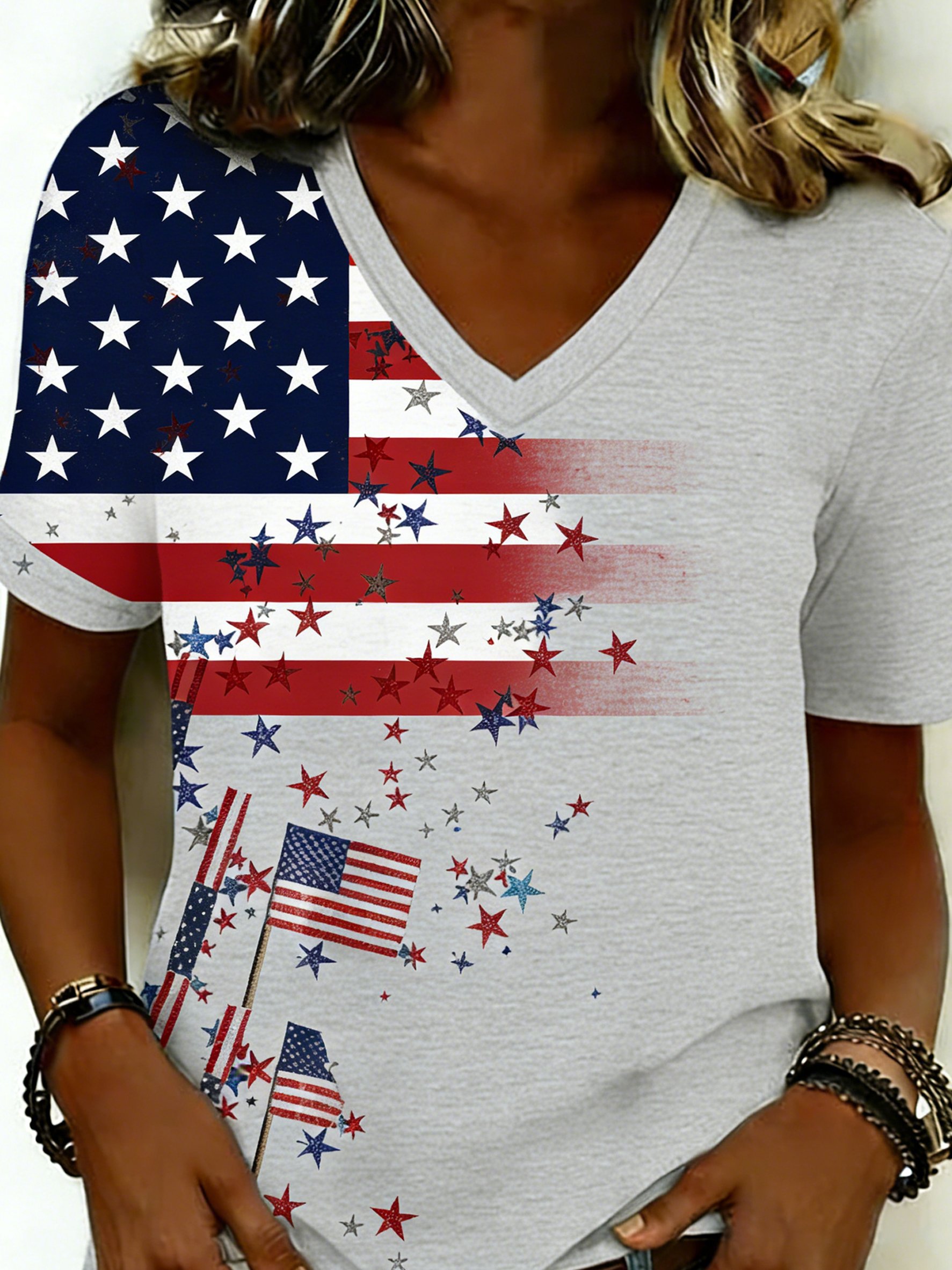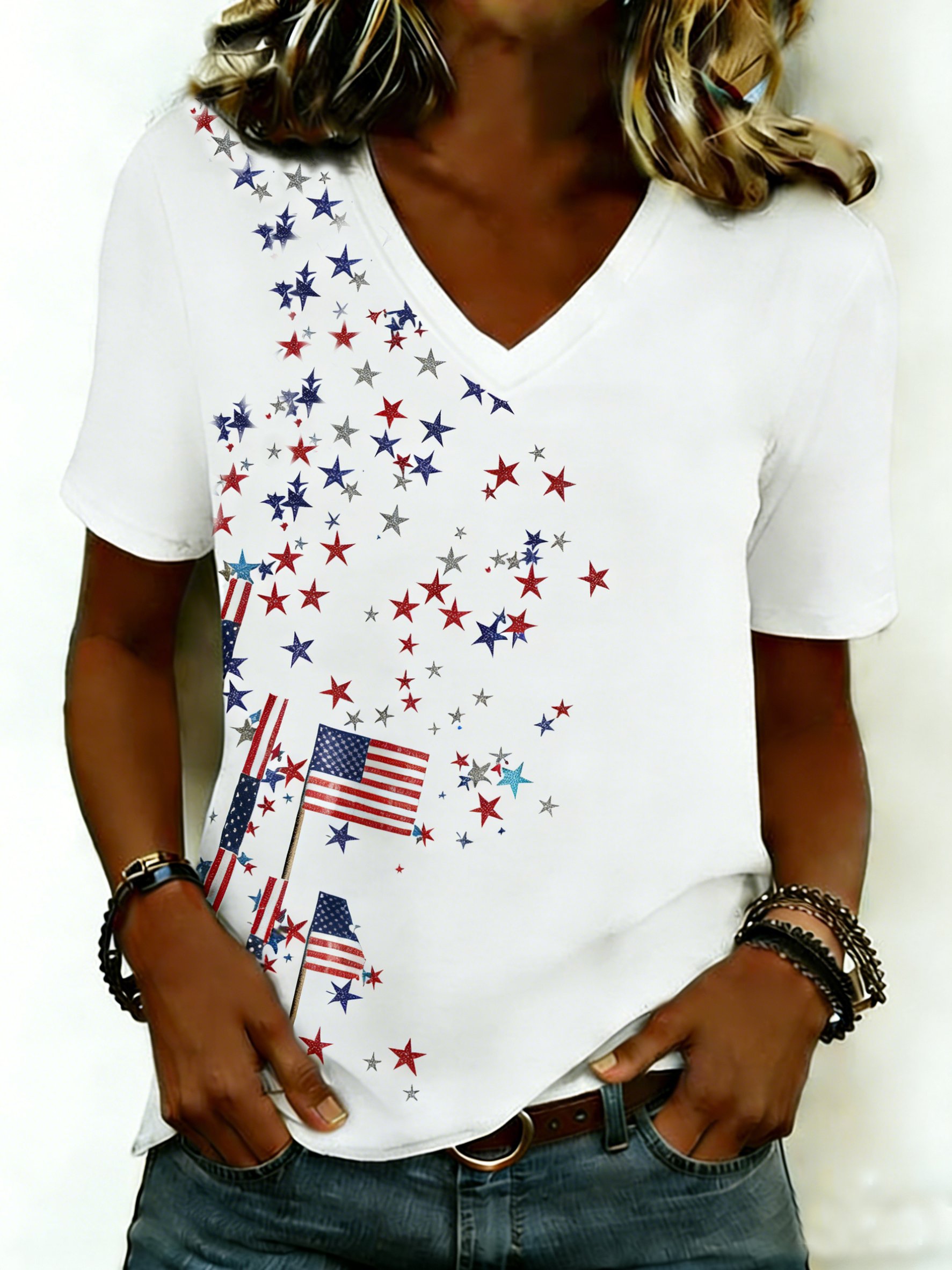 Women's 250th Anniversary Of The Founding Of the United States Short Sleeve V Neck 3D Printing Star America Flag Daily Going Out Casual T-Shirt