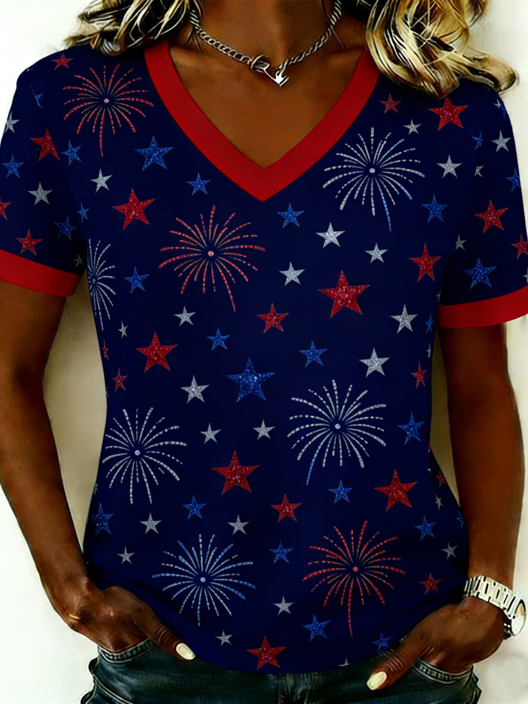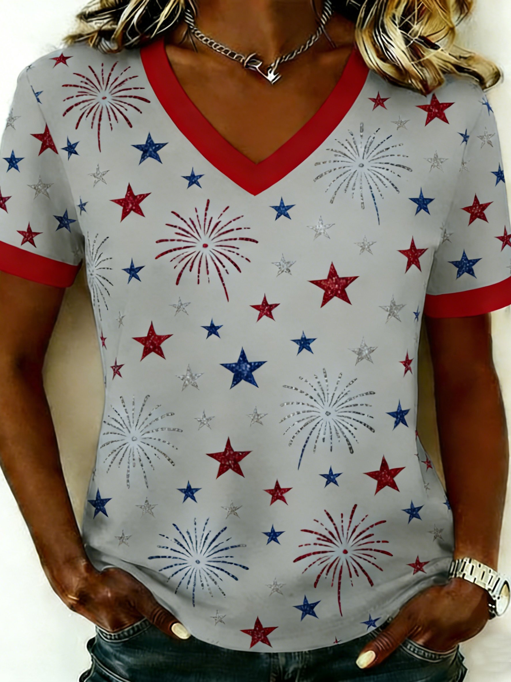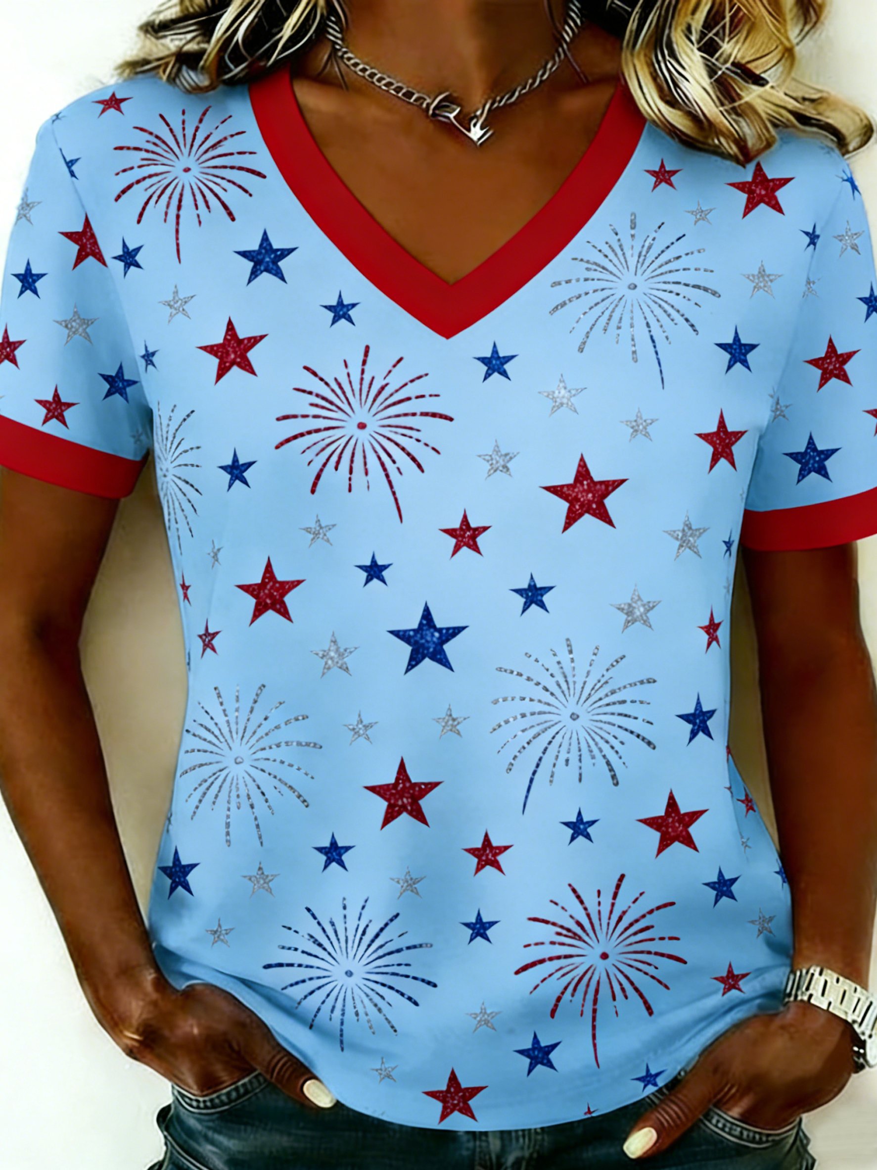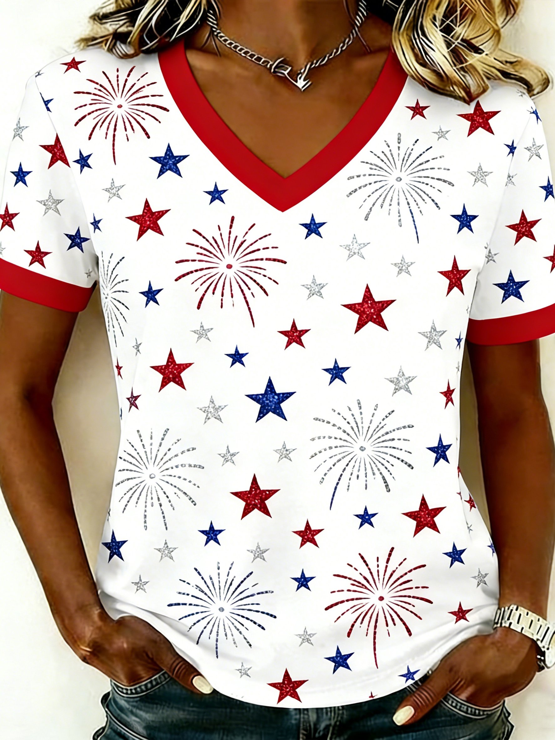 Women's 250th Anniversary Of The Founding Of the United States Short Sleeve V Neck 3D Printing Star Independence Day Daily Going Out Casual T-Shirt