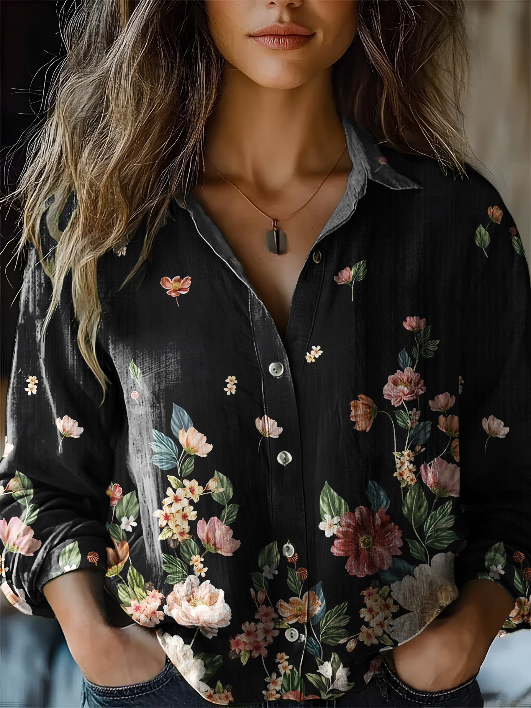 Women's Art Floral Print Casual Shirt