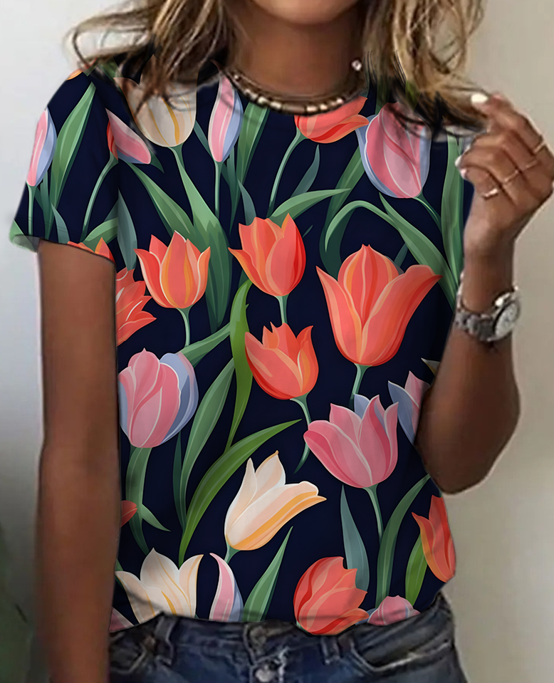 Women's Art Floral Print Cotton T-Shirt