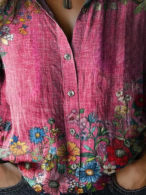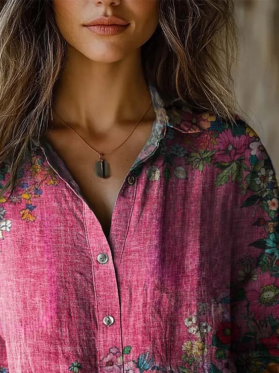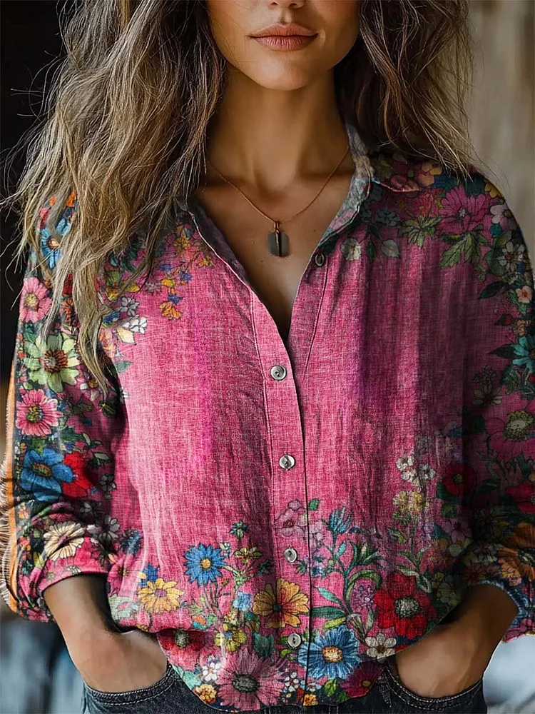Women's Artistic Floral Print Long Sleeve Shirt