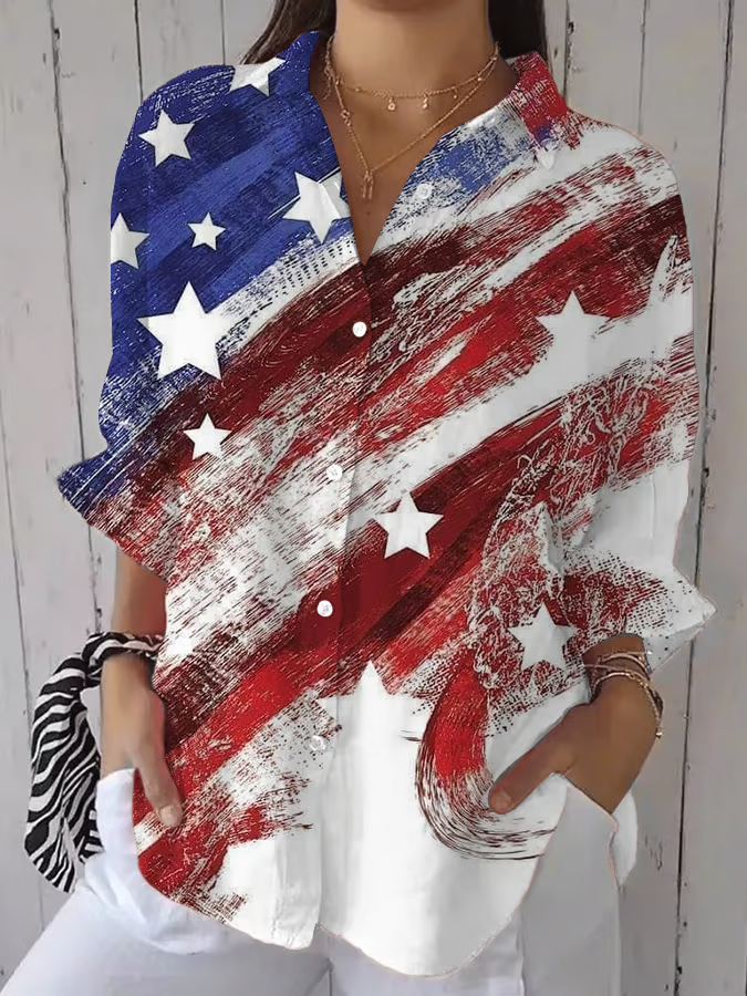 Women's Casual Cotton And Linen Independence Day Shirt