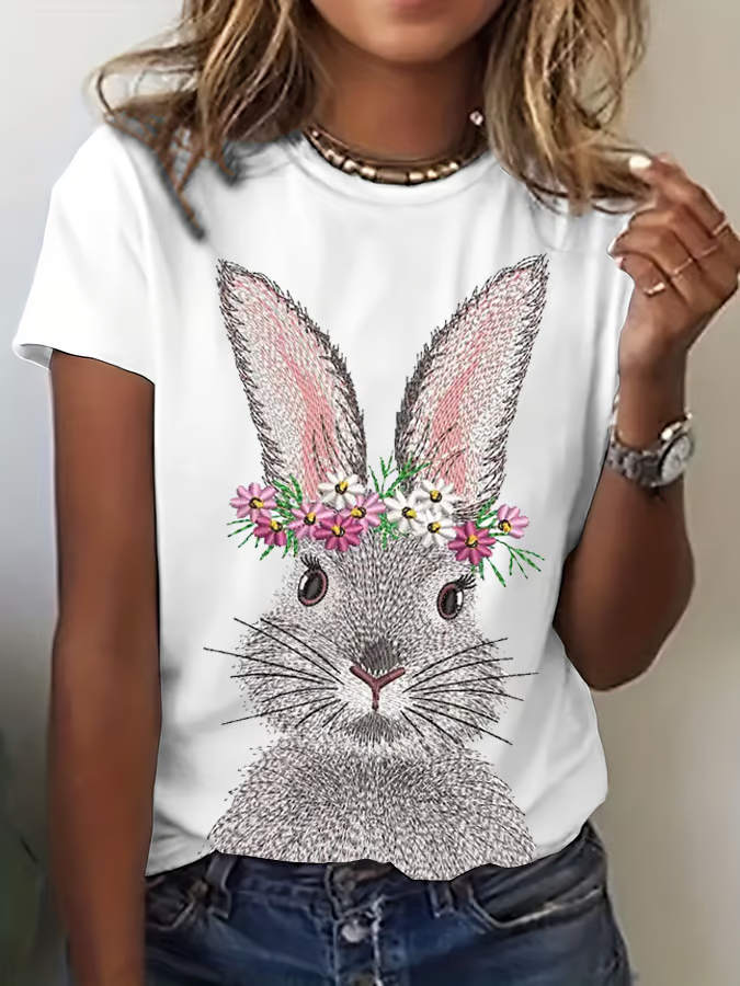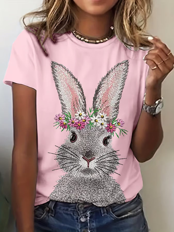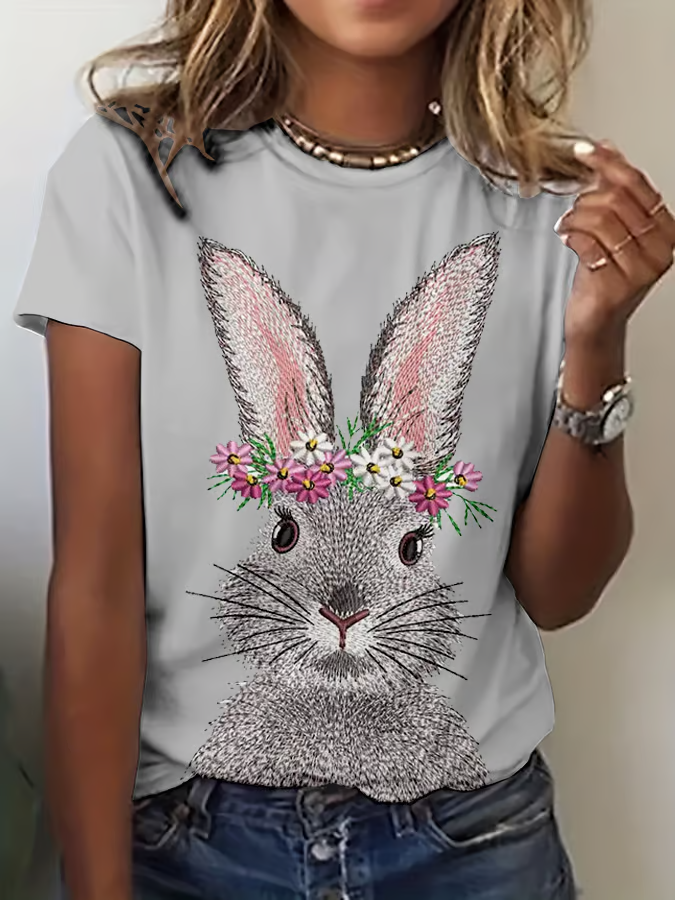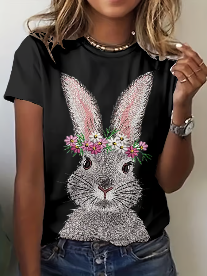 Women's Easter Bunny Print Crew Neck T-Shirt