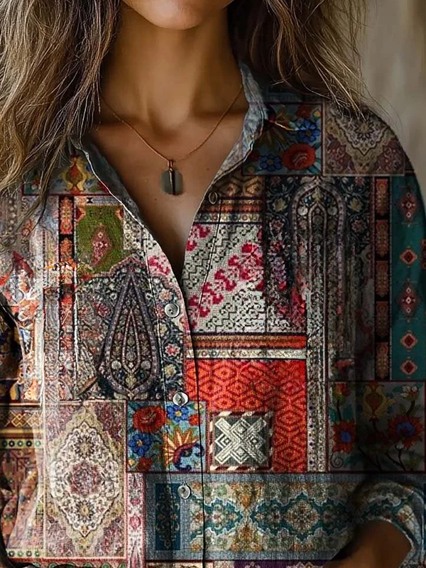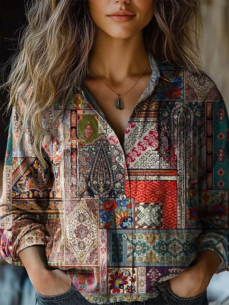 Women's Ethnic Art Floral Print Long Sleeve Shirt