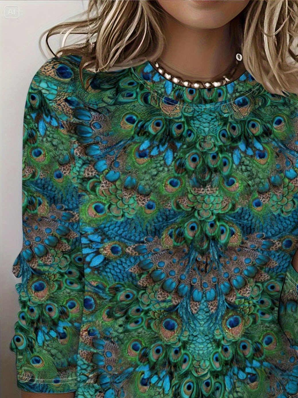 Women's Long Sleeve T-shirt Spring/Fall Green Abstract Printing Jersey Crew Neck Daily Going Out Casual Top