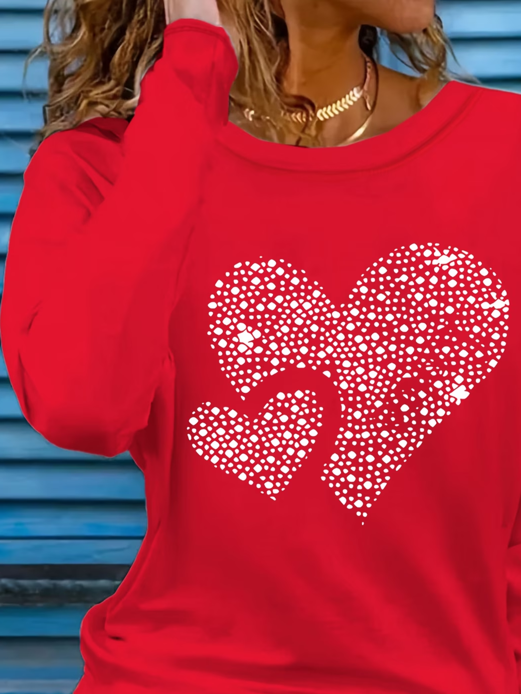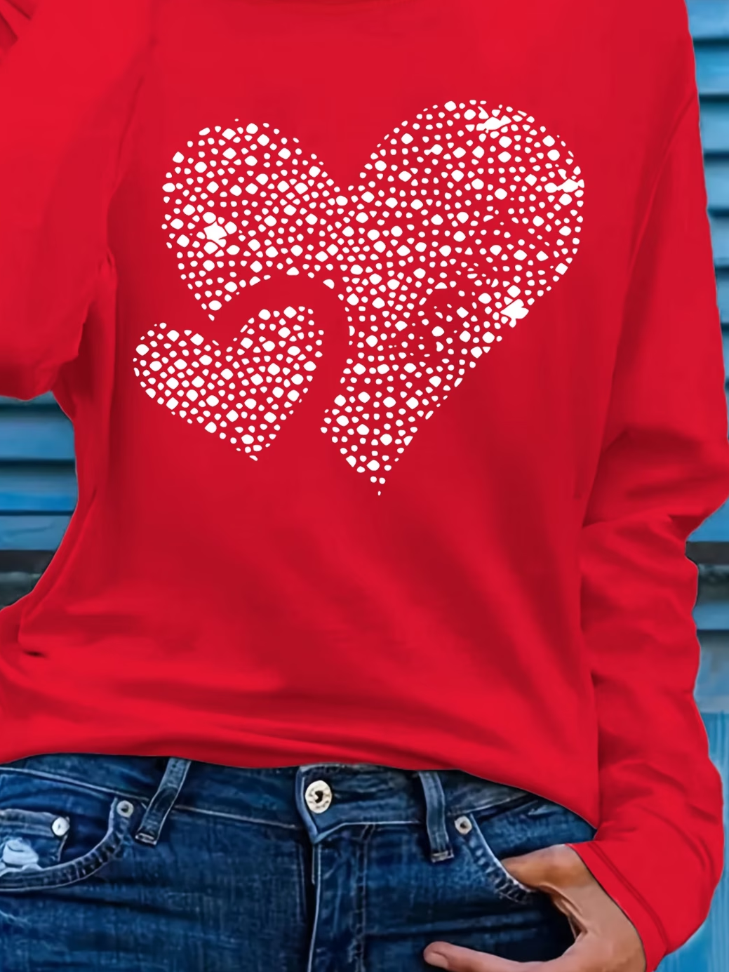 Women's Long Sleeve T-shirt Spring/Fall Red Heart/Cordate Printing Jersey Crew Neck Daily Going Out Casual Top